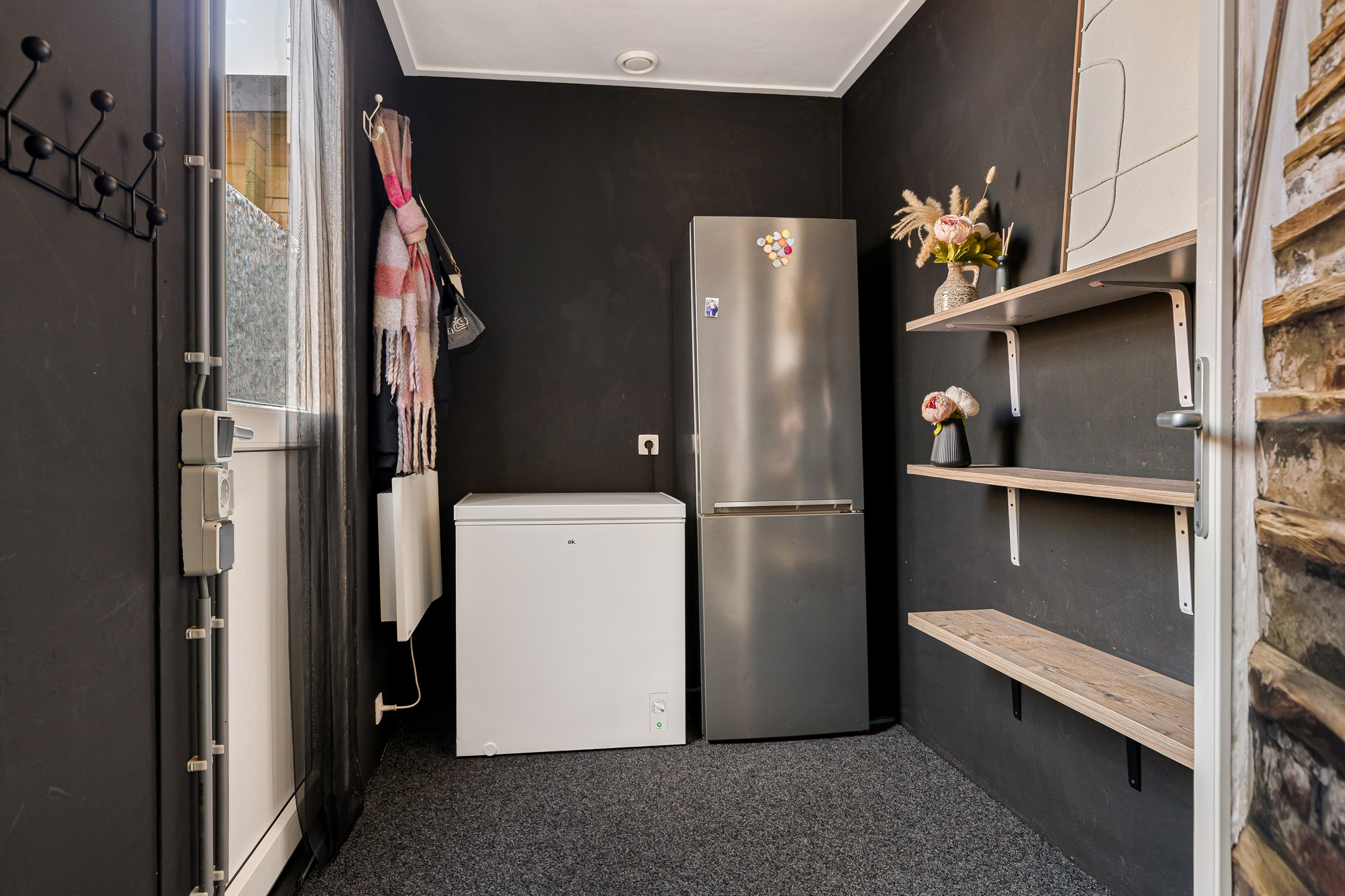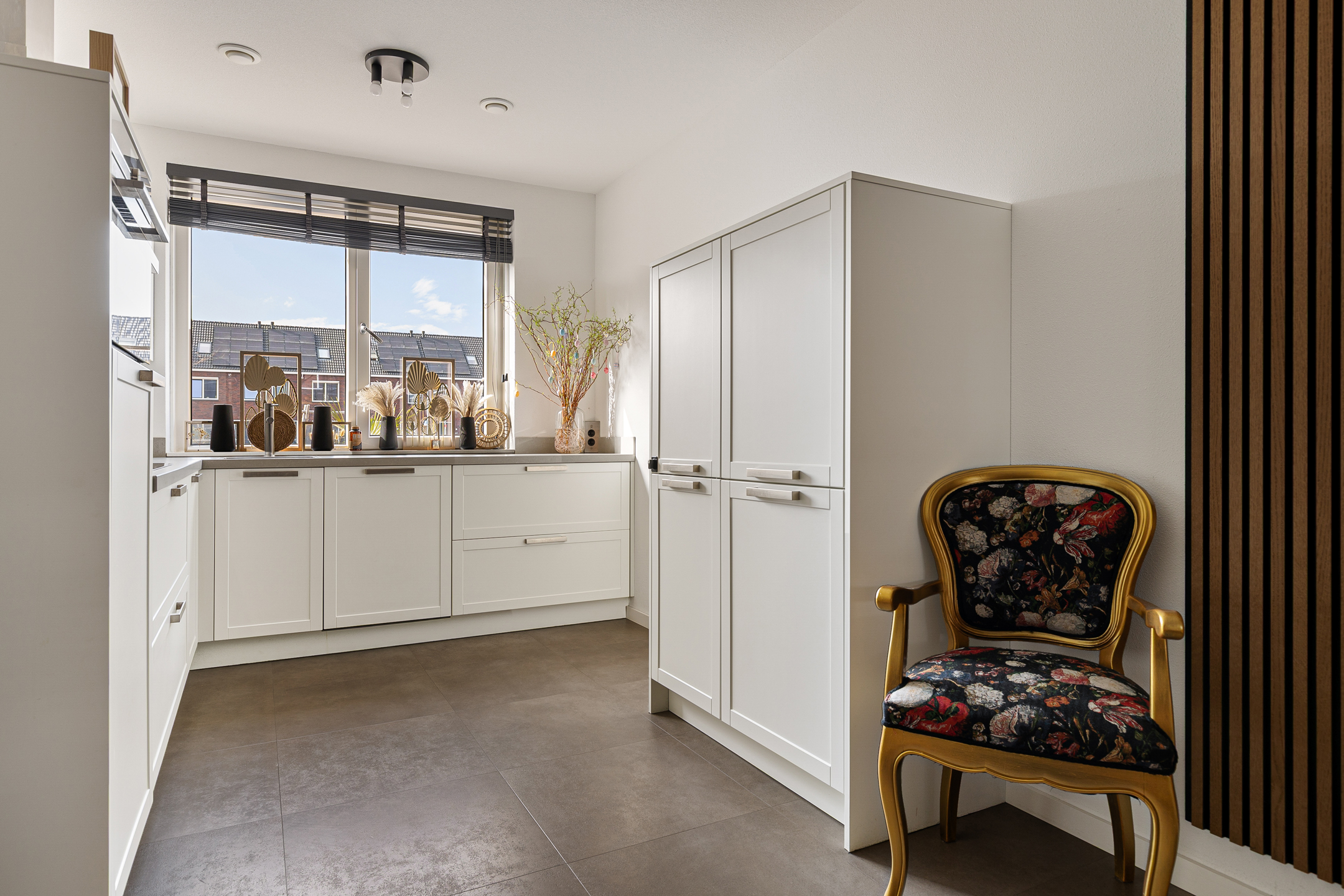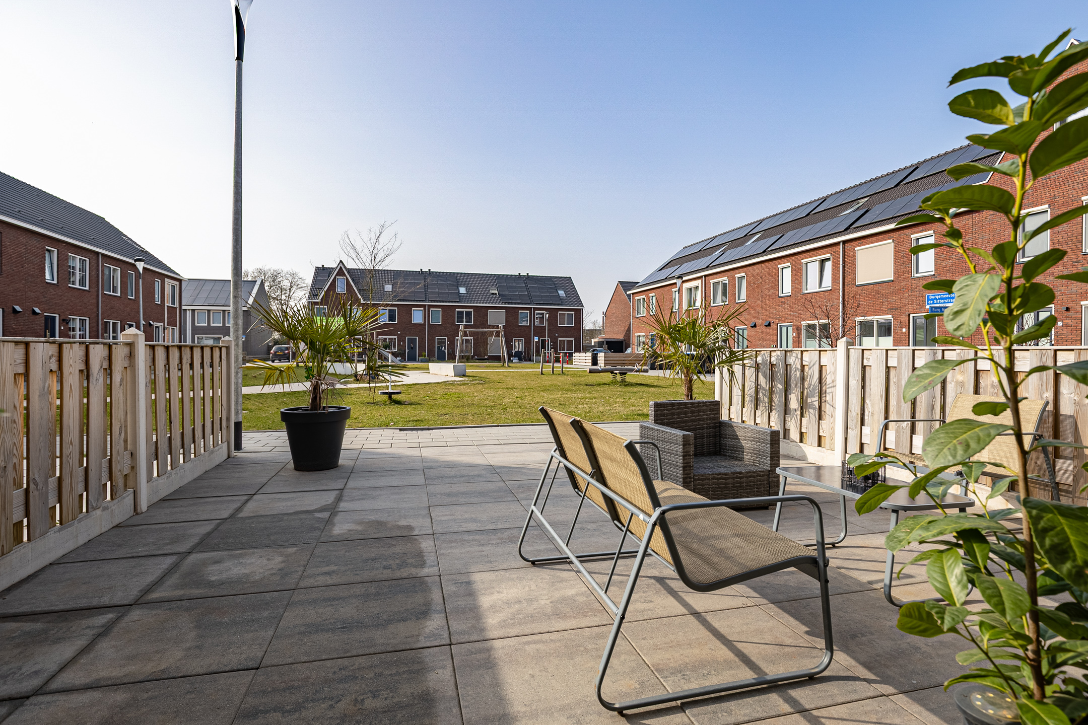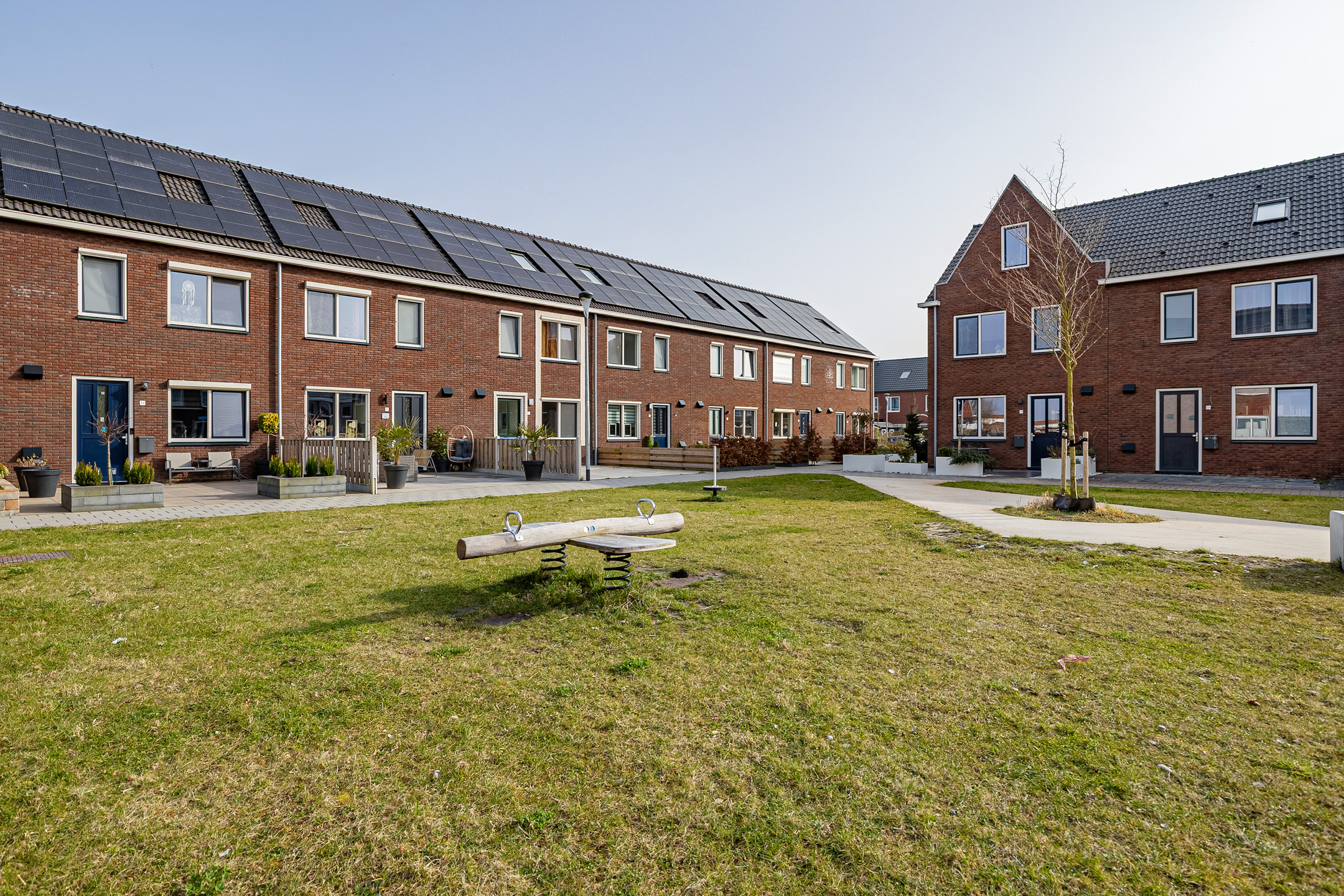De wijk Opwierde Zuid in Appingedam heeft onlangs een grootschalige herstructurering ondergaan. Eén van de woningen die van dit project deel heeft uitmaakt is de tussenwoning aan de Burgemeester Meesstraat 12. Door het recente bouwjaar en de bijbehorende bouwaard is het geheel als duurzaam te kenmerken. Niet alleen op het gebied van isolatie. Ook als gevolg van de aanwezigheid van zonnepanelen en het ‘gasloze’ karakter ervan. Deze ruime gezinswoning wordt namelijk verwarmd middels een lucht/water warmtepomp. Opvallend aan de buitenzijde is in de eerste plaats de bijkeuken aan de tuinzijde. Bijkomend voordeel, de tuin is direct middels heerlijke tuindeuren te bereiken vanuit de woonkamer.