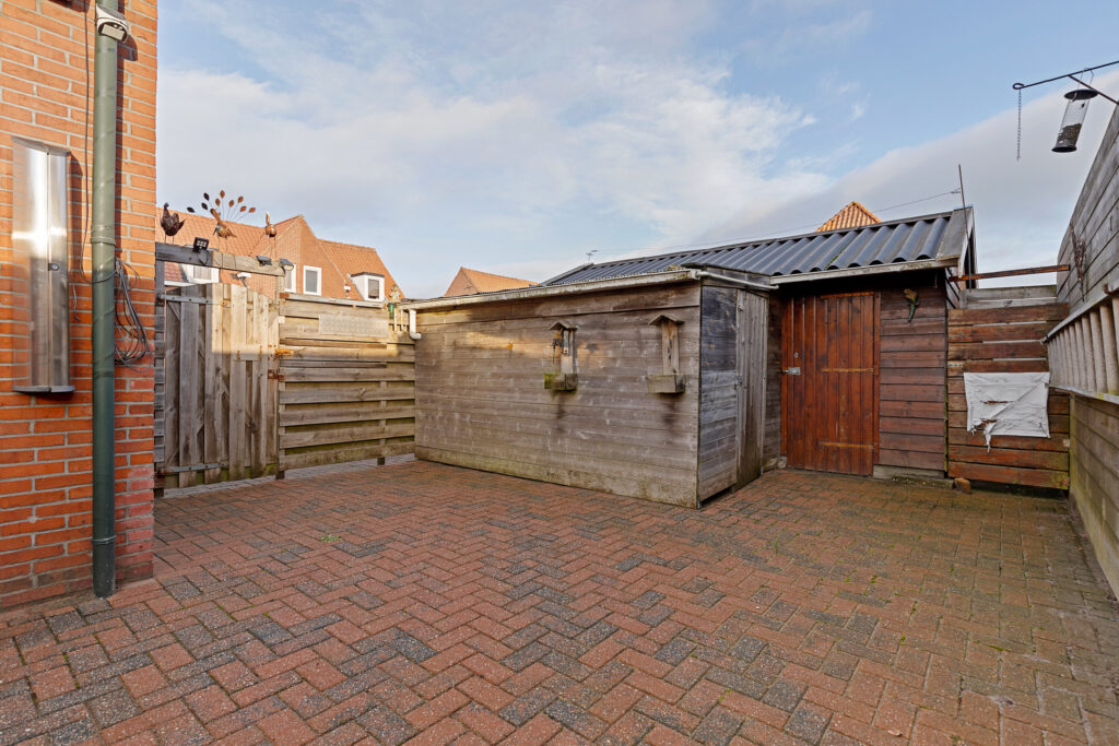 - Houten berging kan relatief eenvoudig tot garage worden omgebouwd.