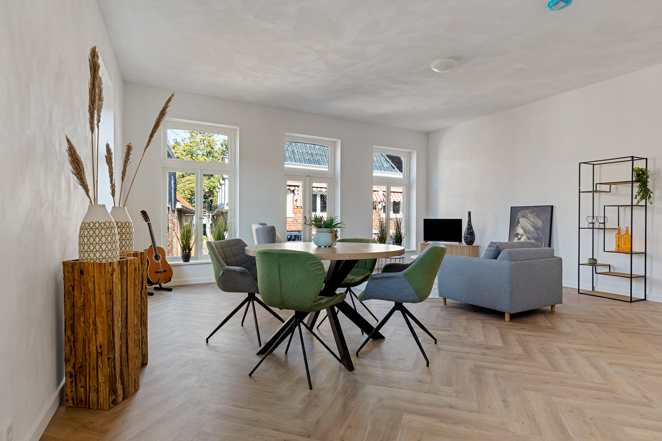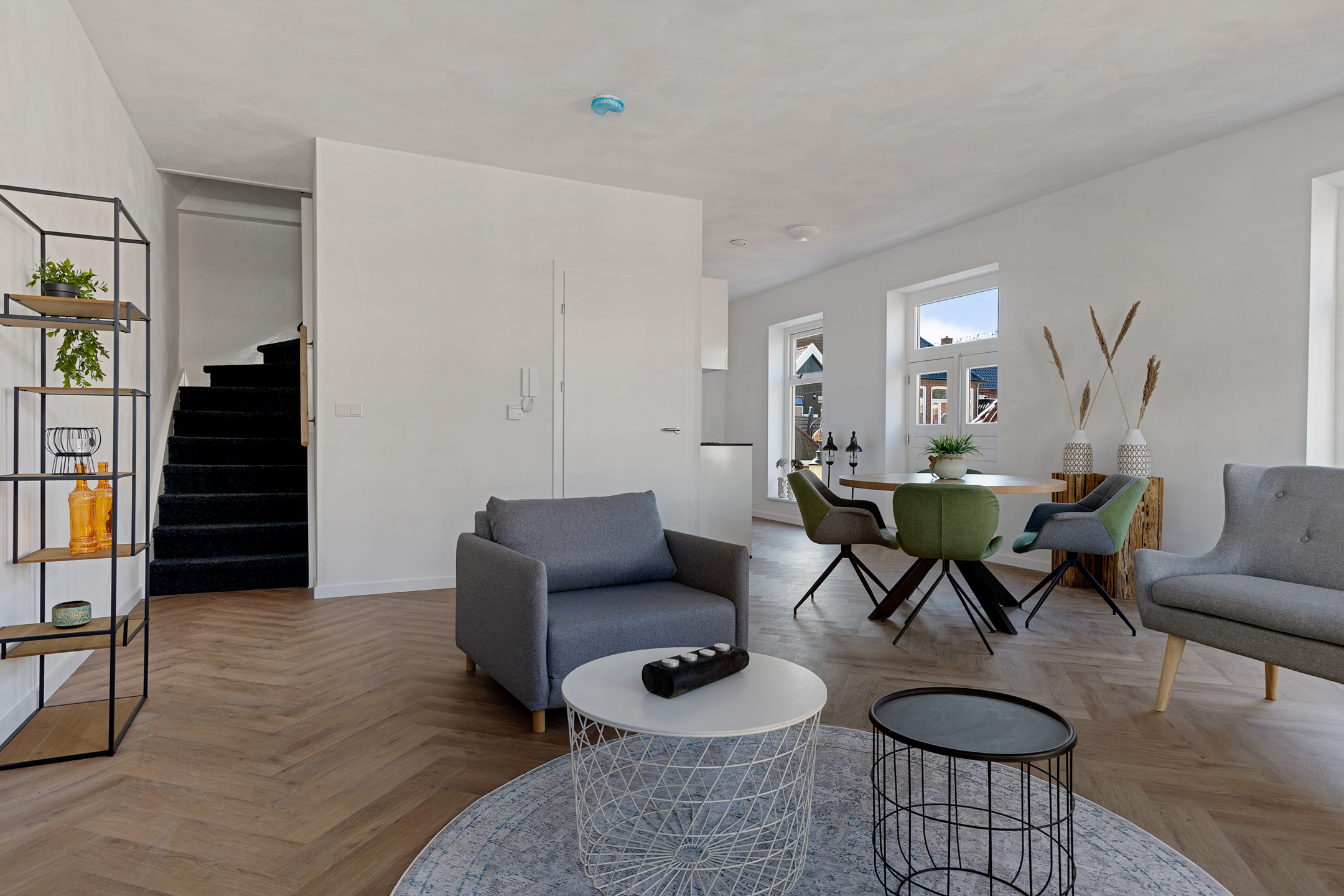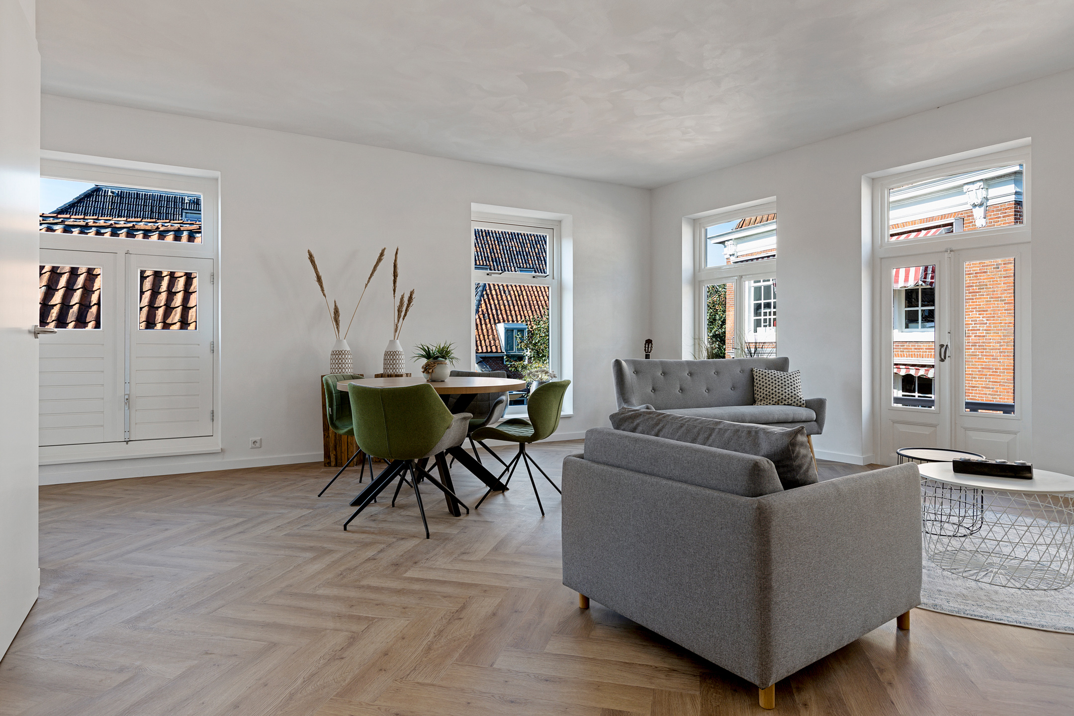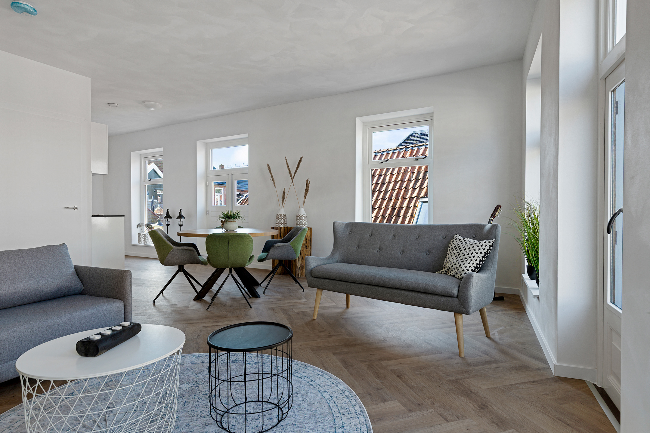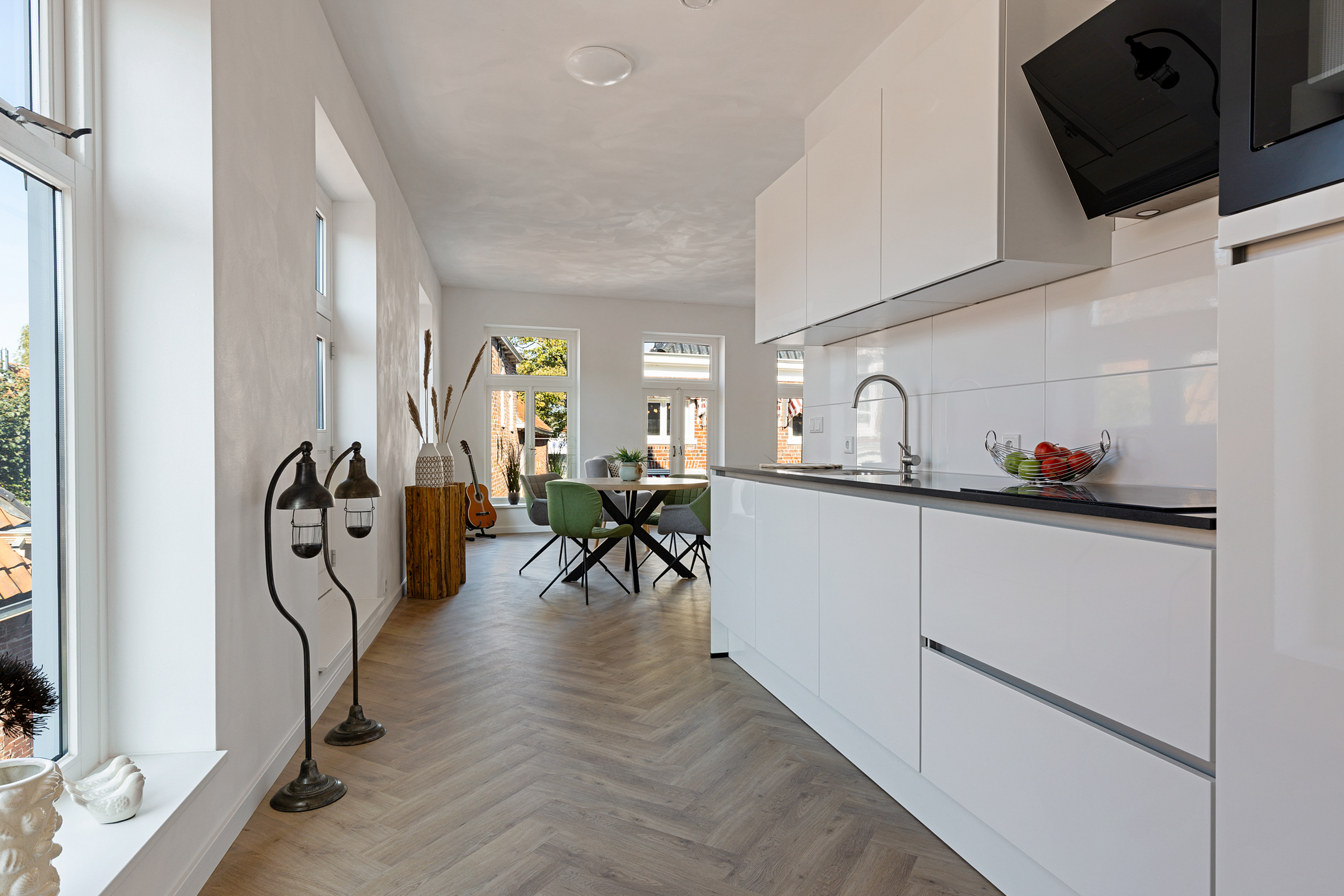 In het prachtige hart van het historisch centrum van Appingedam bevindt zich deze volledig instapklare maisonette. Het gehele pand is het afgelopen jaar compleet opnieuw ingedeeld, gerenoveerd en gemoderniseerd, volledig verduurzaamd en gasloos gemaakt. Dit heeft geresulteerd in een prachtig label A+ en een uiterst comfortabel appartement, waar u met recht zo kunt intrekken. U treft een uiterst royale woonkamer met half open keuken, modern sanitair en 2 slaapkamers. Op de tweede verdieping bevinden zich nog 2 aparte ruimtes van totaal ca. 40 m² met een beperkte stahoogte, waardoor dit niet als woonoppervlakte gerekend mag worden, maar welke prima als slaapkamer of hobbyruimte gebruikt zouden kunnen worden. Kortom: heerlijk en luxueus wonen met op loopafstand alles wat Appingedam u te bieden heeft! Daarbij zijn alle voorzieningen op loopafstand te bereiken waaronder supermarkten, een gevarieerd winkelaanbod, meerdere restaurants en terrassen.