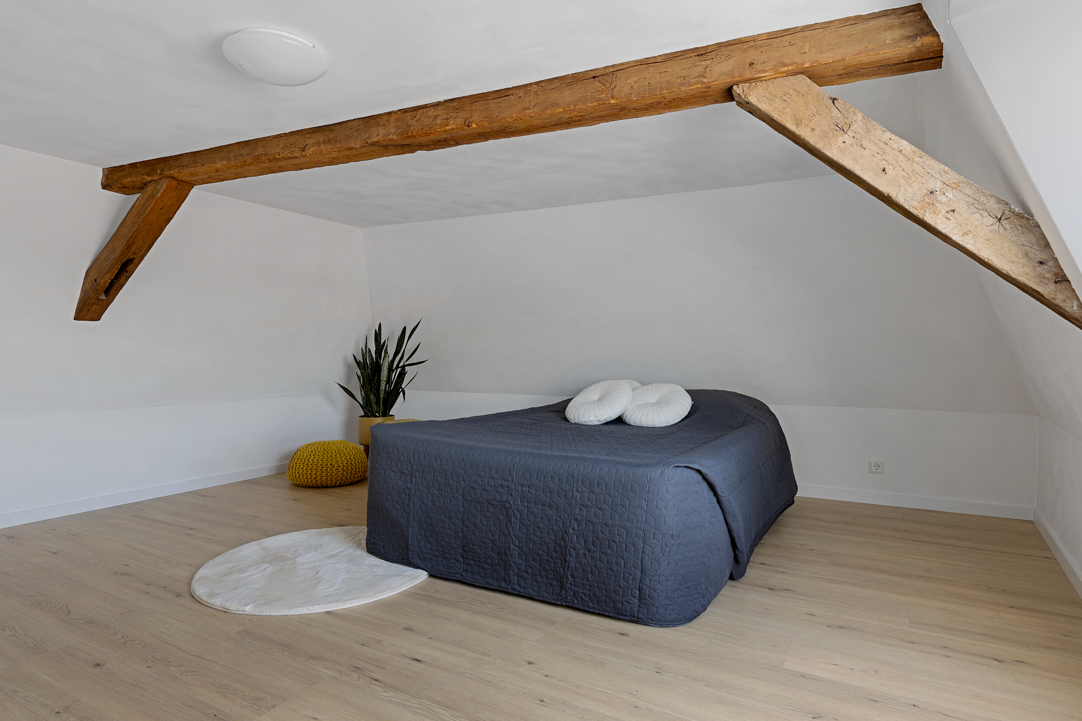 - Vloerverwarming door de gehele woning i.c.m. pvc-visgraatvloeren;