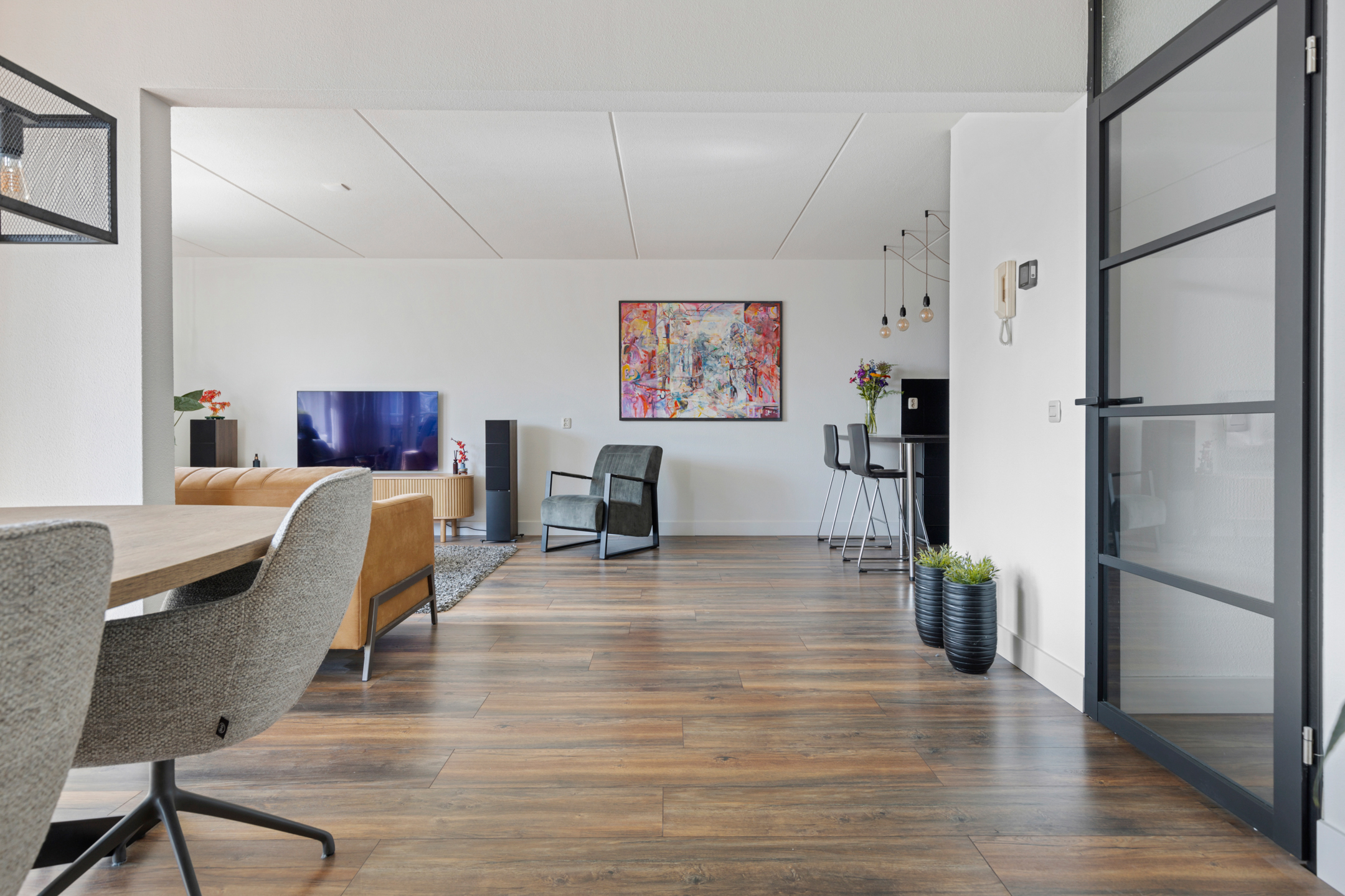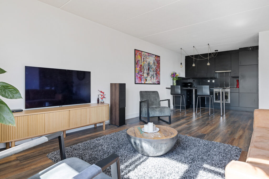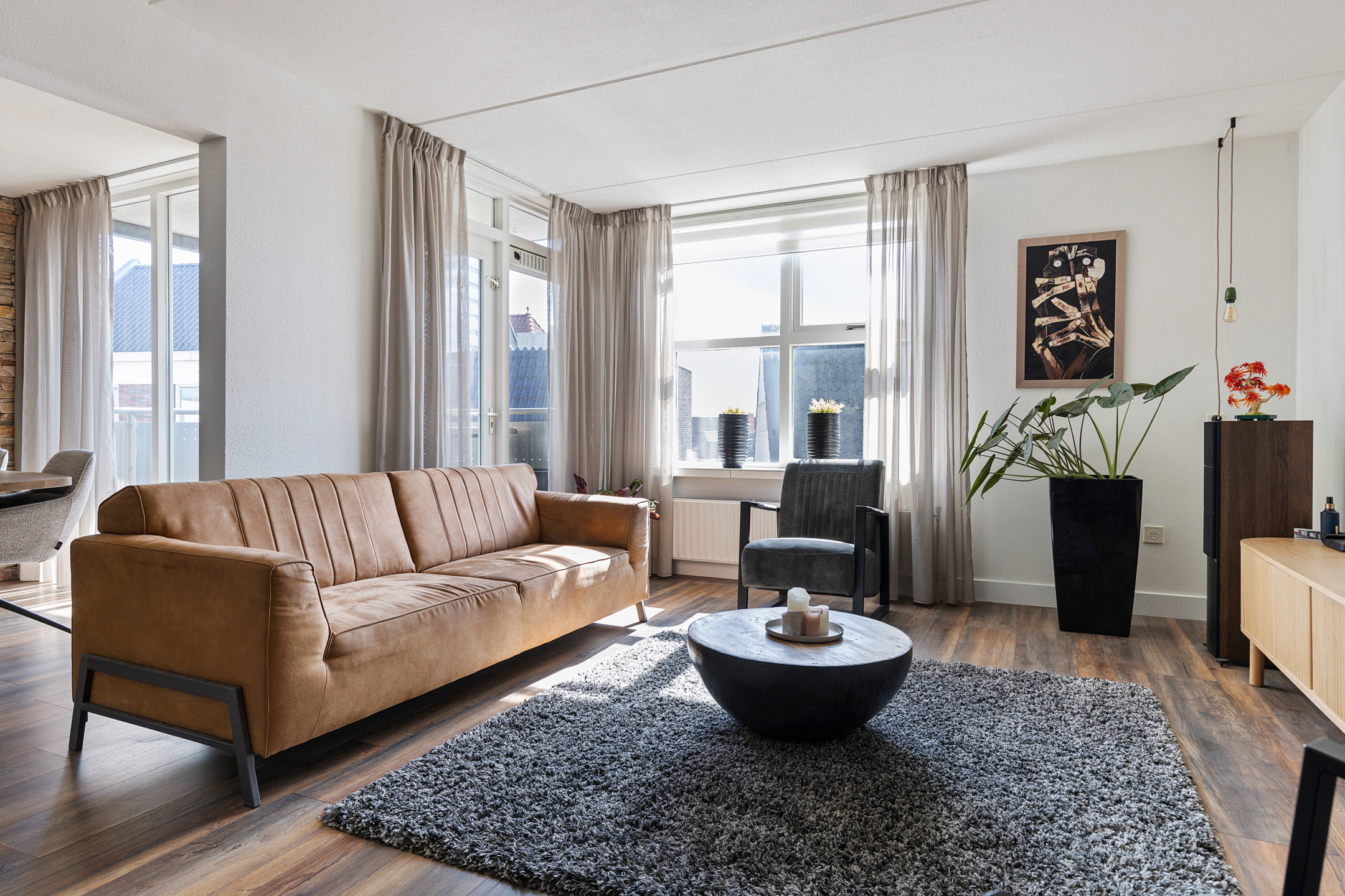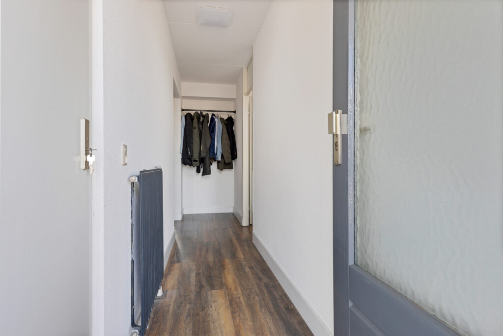 Entree/hal met meterkast en aangrenzend slaapkamer (ca. 12,0 m²), slaapkamer (ca. 11,5 m²; met vaste kast met witgoedaansluiting), toilet, stookruimte, badkamer (ca. 3,7 m²; vernieuwd in 2023 met douche, wastafelmeubel met spoelkom en verwarmde spiegel met verlichting), L-vormige woonkamer (ca. 36,5 m²) met toegang naar het balkon (ca. 6,5 m²) en met open keuken (ca. 7,0 m²; met hoekopstelling voorzien van 4-pits gaskookplaat, afzuigkap en koelkast) en provisiekast.