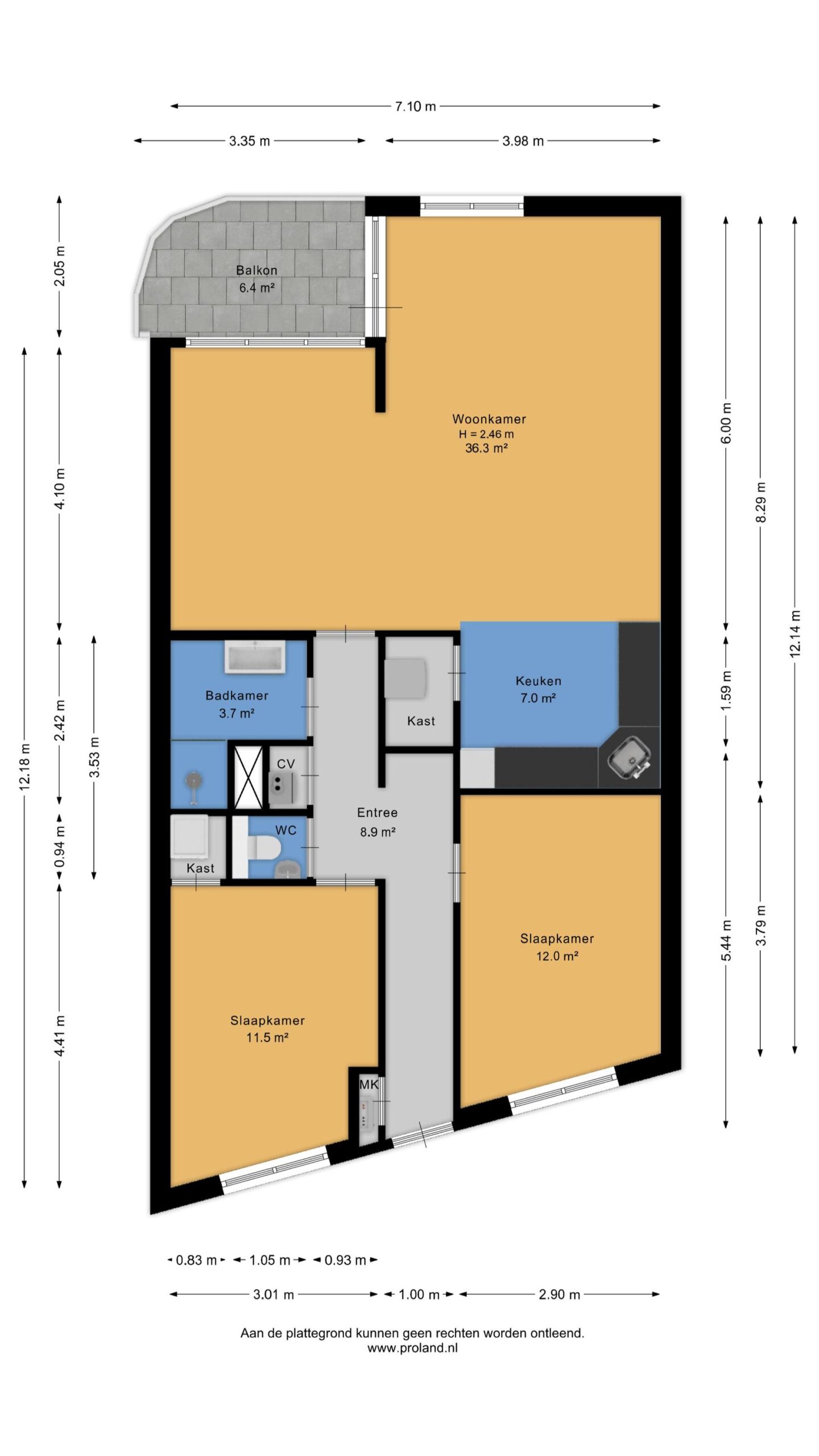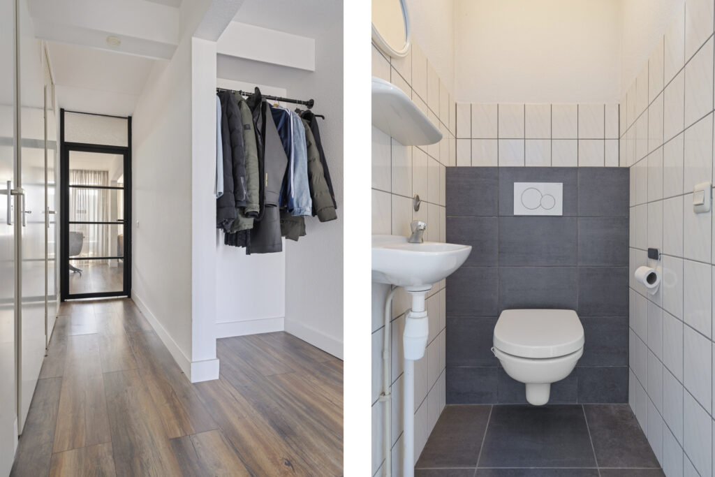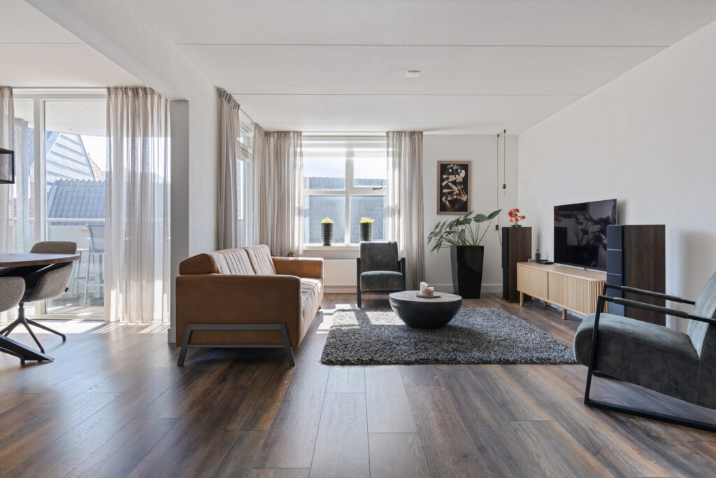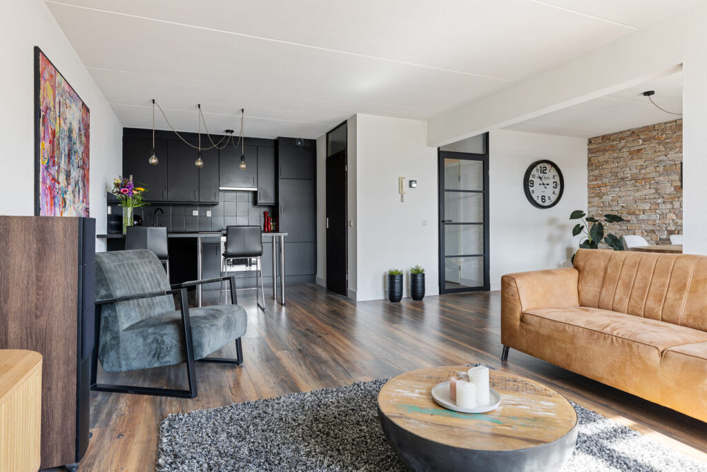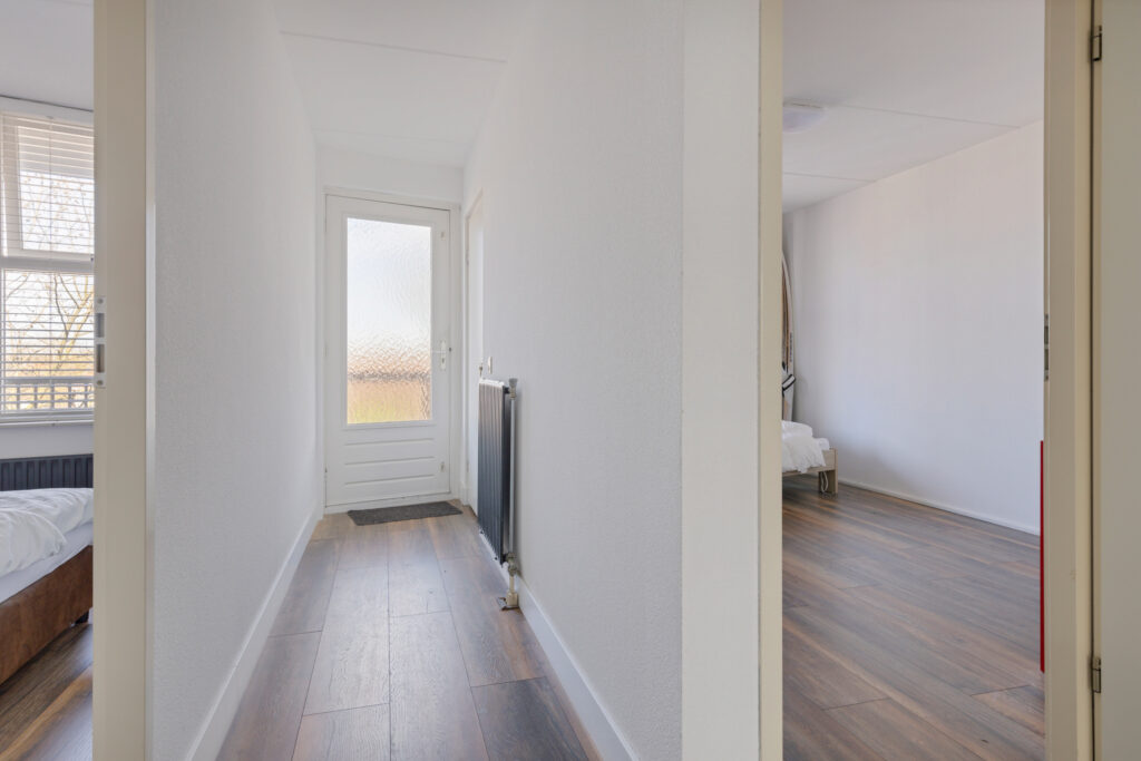 Entree/hal met meterkast en aangrenzend slaapkamer (ca. 12,0 m²), slaapkamer (ca. 11,5 m²; met vaste kast met witgoedaansluiting), toilet, stookruimte, badkamer (ca. 3,7 m²; vernieuwd in 2023 met douche, wastafelmeubel met spoelkom en verwarmde spiegel met verlichting), L-vormige woonkamer (ca. 36,5 m²) met toegang naar het balkon (ca. 6,5 m²) en met open keuken (ca. 7,0 m²; met hoekopstelling voorzien van 4-pits gaskookplaat, afzuigkap en koelkast) en provisiekast.