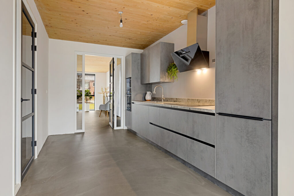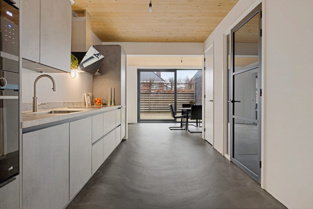 Zoals beschreven is de indeling van de woning in de eerste plaats levensloopbestendig te noemen. Een royale slaap- en badkamer op de begane grond aan de achterzijde van de woning. Opvallend aan de indeling is verder dat de keuken - overigens modern uitgevoerd qua kleurstelling en apparatuur - een zeer prominente, centrale plek heeft gekregen. Het ‘scheidt’ min of meer de woonkamer aan de straatzijde van de eetkamer aan de tuinzijde. Overigens beiden van een prettige maatvoering en een ‘betonlook’ vloerafwerking. Het geheel wordt op de begane grond gecompleteerd door een provisieruimte, modern toilet en een functionele bijkeuken met buitendeur. Voor - grote - gezinnen is de verdieping uiteraard ook zeer interessant. Aan de Wilhelminaweg 6a wordt deze doelgroep niet teleurgesteld. In totaal zijn op deze woonlaag drie slaapkamers gesitueerd, waaronder een hele grote met fraai balkon aan de straatzijde. Naast twee royale bergruimtes bevinden zich op deze verdieping een tweede - moderne - badkamer en dito toilet.