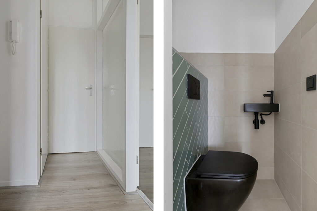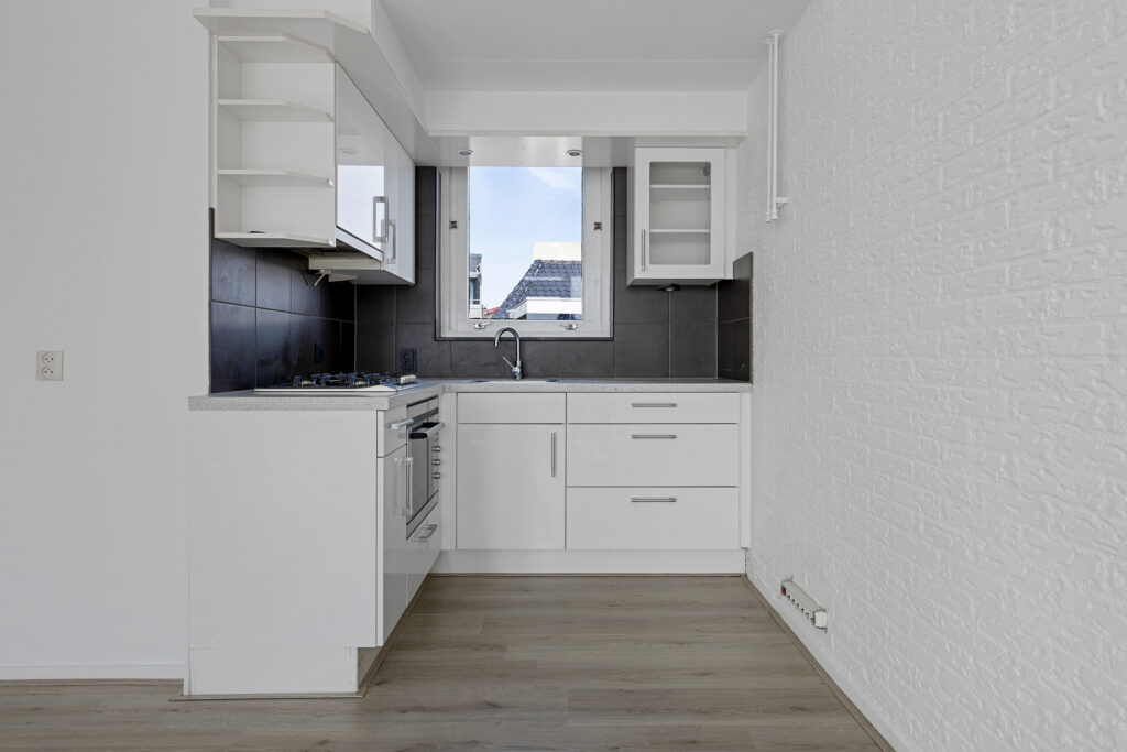 Het als zeer speels te omschrijven complex bestaat uit meerdere verdiepingen met op de begane grond bedrijfsruimten en bergingen met elektra in de kelder. De appartementen op de woonverdiepingen zijn op hun beurt toegankelijk via een gesloten portiek aan de voorzijde van het complex, waarbij het is voorzien van een intercominstallatie en een keurig trappenhuis. Het appartement op huisnummer 41 beschikt over een lichte woonkamer met laminaatvloer en een open keuken. De keuken is op haar beurt voorzien van inbouwapparatuur. Recent zijn de badkamer- en toiletinrichting compleet gemoderniseerd. De slaapkamer beschikt tot slot ook over een keurige laminaatvloer.