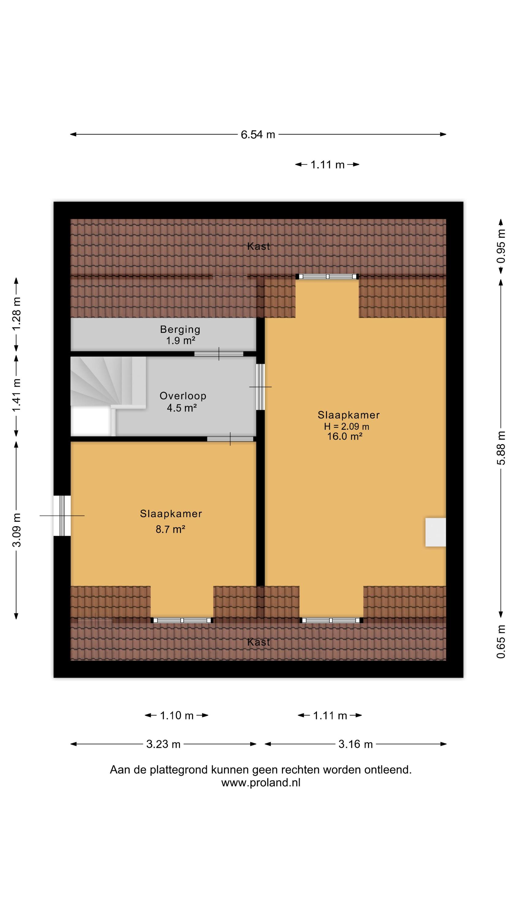Middels vaste trap te bereiken overloop met kastruimte en aangrenzend slaapkamer (ca. 8,5 m²) en slaapkamer (ca. 16 m²).