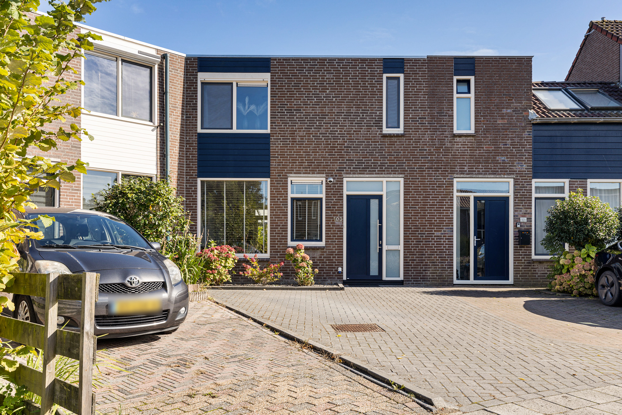 Op de begane grond zoals gezegd een slaap- en badkamer, waarbij eerstgenoemde aan de rustige, tuinzijde van de woning is gesitueerd. Ook de aanwezigheid van een bijkeuken is niet standaard in het straatbeeld. Helemaal niet met de afmetingen als op huisnummer 103. Aan de tuinzijde verder de woonkamer met tuindeur naar de heerlijke veranda. De open en moderne keuken is juist aan de straatzijde gesitueerd, net als de entree met toilet en trapopgang naar de eerste verdieping. Op deze verdieping biedt de overloop toegang tot nog eens drie slaapkamers waarvan twee met laminaatvloeren, een tweede - keurige - badkamer en stook- annex bergruimte.