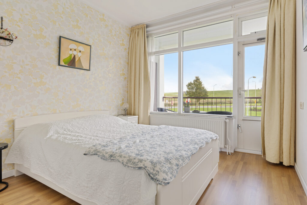 In de "Eemszichtflat" in Delfzijl biedt Brandsma De Jong dit zeer nette en goed onderhouden appartement aan. Het appartement is gelegen op de eerste woonlaag, heeft twee slaapkamers en een royale en zonnige woonkamer met veel lichtinval. Vanuit de woonkamer en vanaf het balkon aan de voorzijde heeft u een fraai uitzicht op de zeedijk en het karakteristieke Eemshotel. U geniet hier van de ochtendzon en in de middag van de schaduw. Vanuit de keuken en de woonkamer heeft u tevens toegang tot het tweede balkon aan de achterzijde, alwaar u in de middag van de zon kunt genieten. Op de begane grond bevinden zich een ruime garage en een prima fietsenberging, welke door de portiek te bereiken zijn.