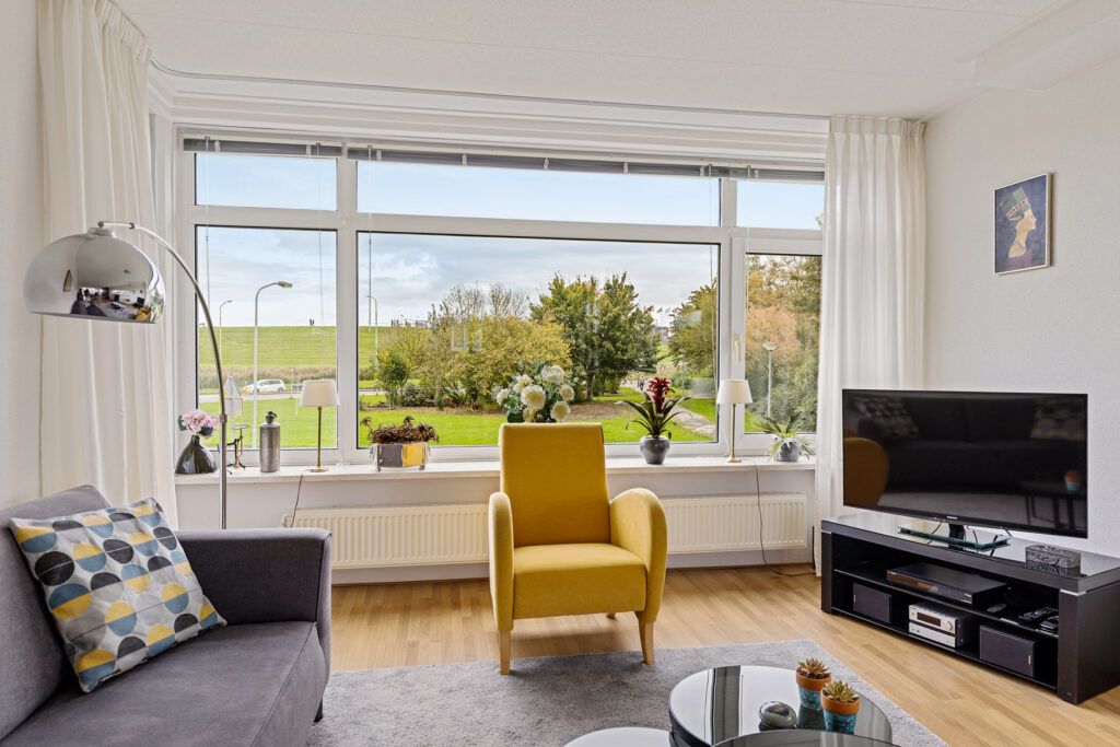 Het appartement bevindt zich aan de rand van het welbekende centrum van de havenstad Delfzijl, welke ooit direct aan de zeehaven was gerealiseerd. Rond de jaren dertig van de vorige eeuw is de eerste uitbreidingswijk buiten de oorspronkelijke Vestinggracht gebouwd, waarbij in de jaren zestig Delfzijl uitbreidde langs de zeedijk met de populaire appartementencomplexen aan de Kustweg. Deze levensloopbestendige appartementen zijn gewild en beschikken over een intercom en liftinstallatie. Daarnaast zijn ze op korte loopafstand van het gezellige centrum en het NS-station gelegen. Binnen 5 minuten wandelt u over de zeedijk en de fraaie strandboulevard met een wijds uitzicht over de Eems.
