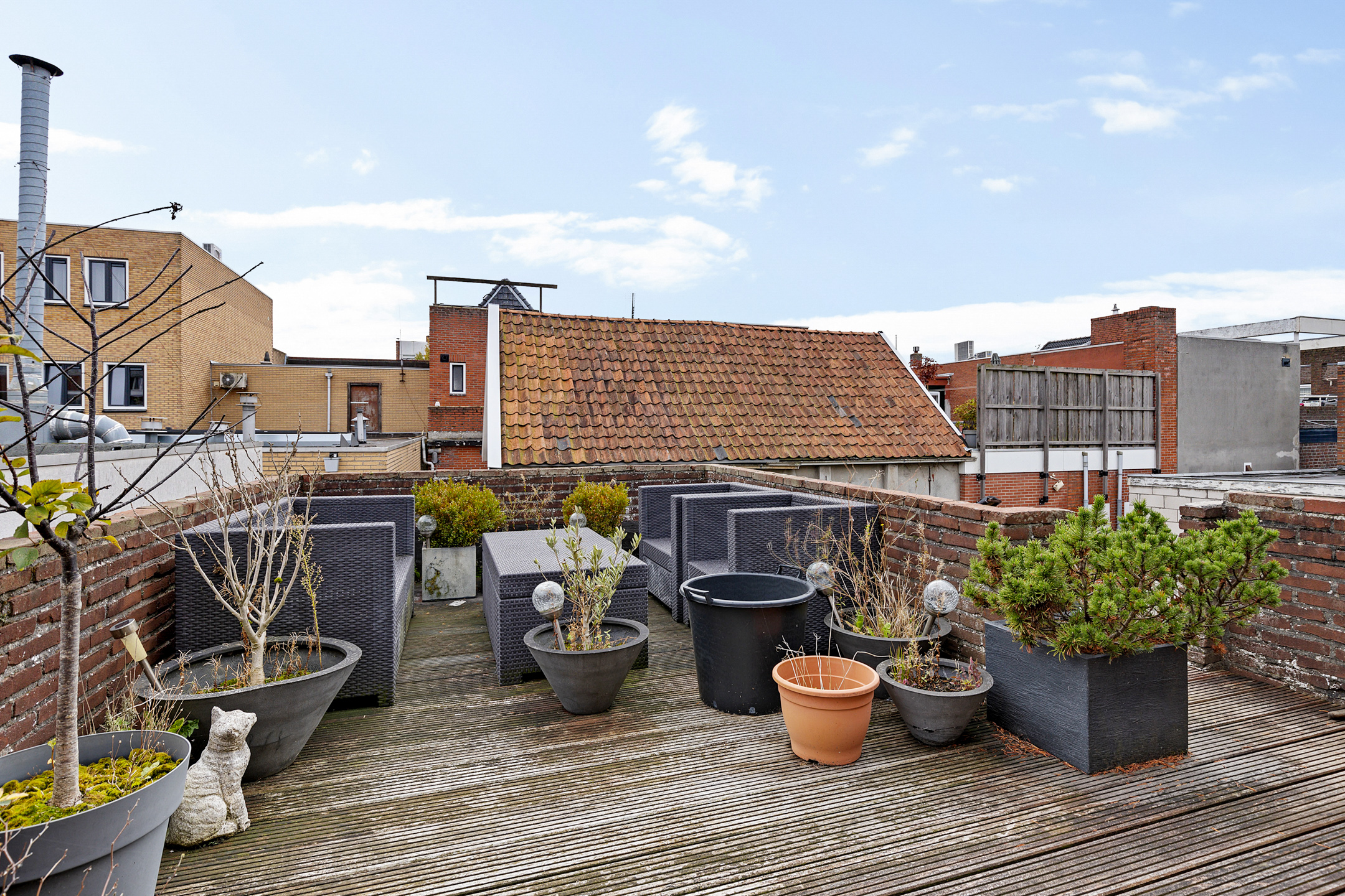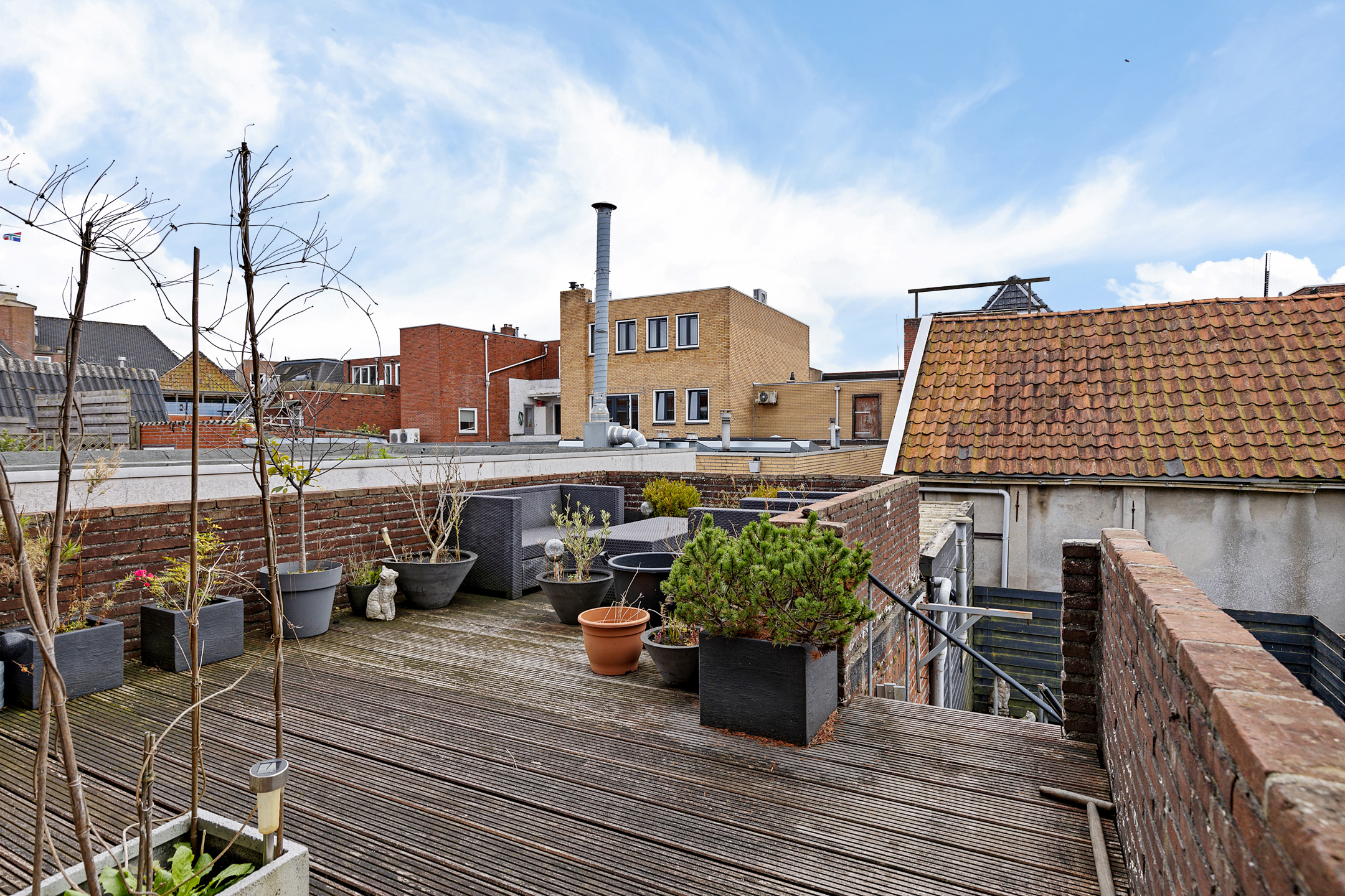 Overloop met aangrenzend woonkamer (ca. 24 m²) met elektrische haard, middels suitedeuren te bereiken eetkamer (ca. 30 m²) en keuken (ca. 6,5 m²; met hoekopstelling voorzien van koel-/vriescombinatie, oven, 5-pits gaskookplaat, afzuigkap, vaatwasser en toegang naar het dakterras (ca. 23 m²). Tevens vanuit de hal te bereiken toilet, badkamer (ca. 5 m²; met ligbad, douche en wastafelmeubel) en opgang naar de tweede verdieping.