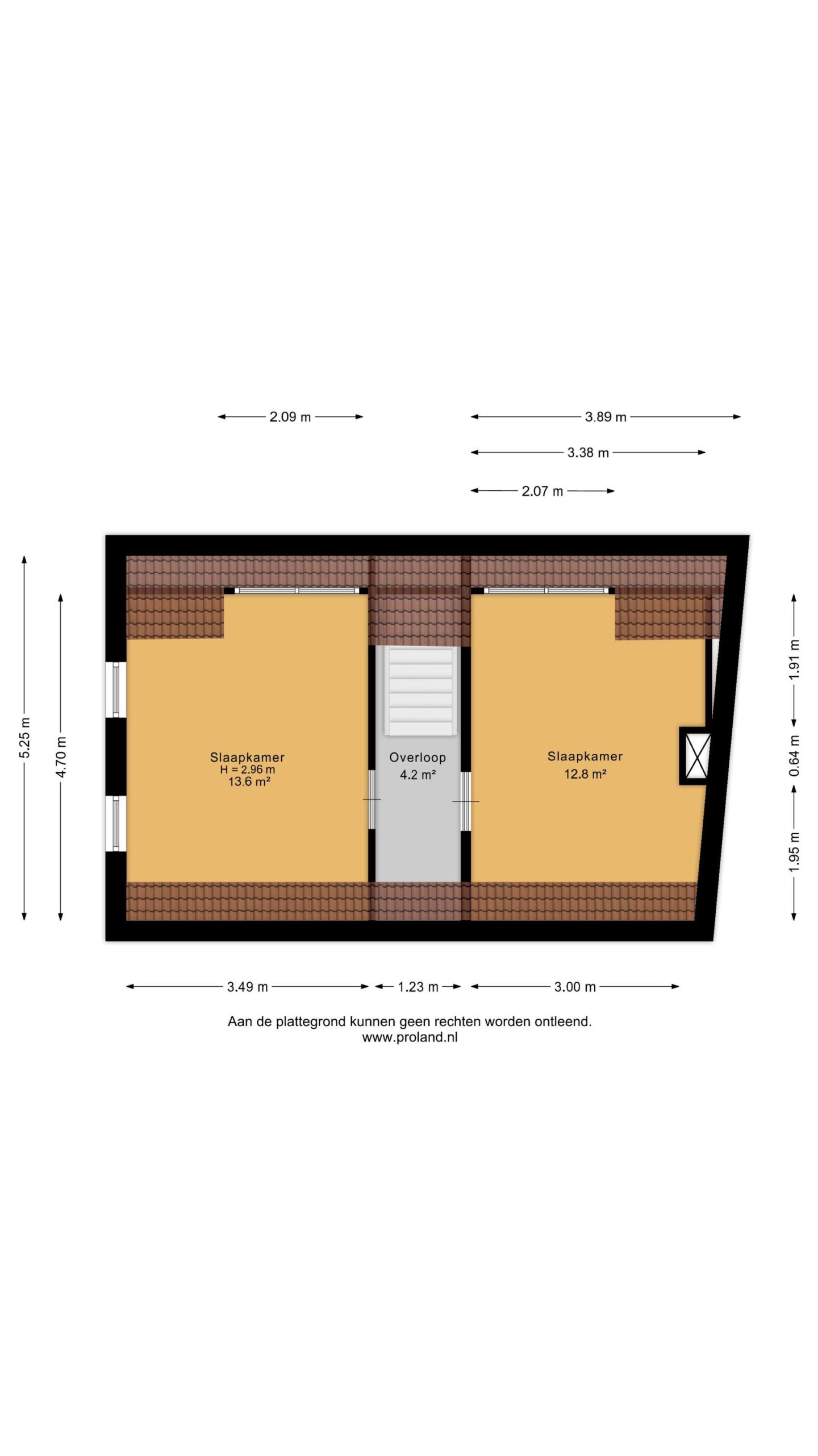 Middels vaste trap te bereiken overloop met aangrenzend slaapkamer (ca. 13,5 m²) en slaapkamer (ca. 13,0 m²).
