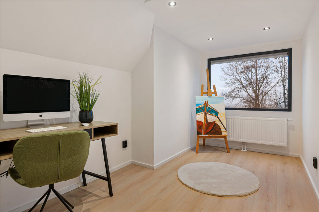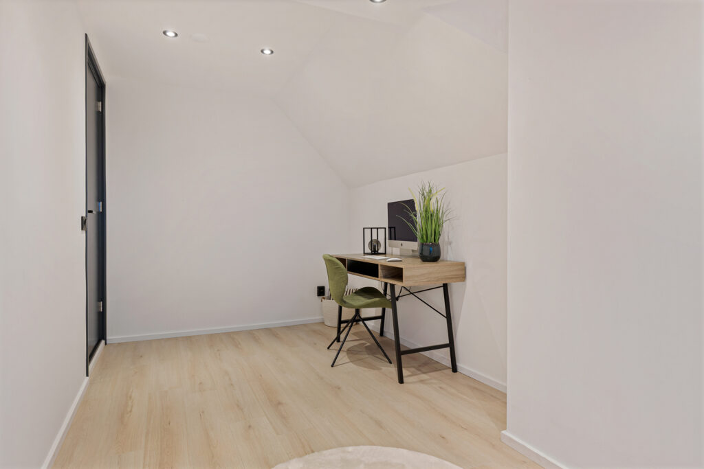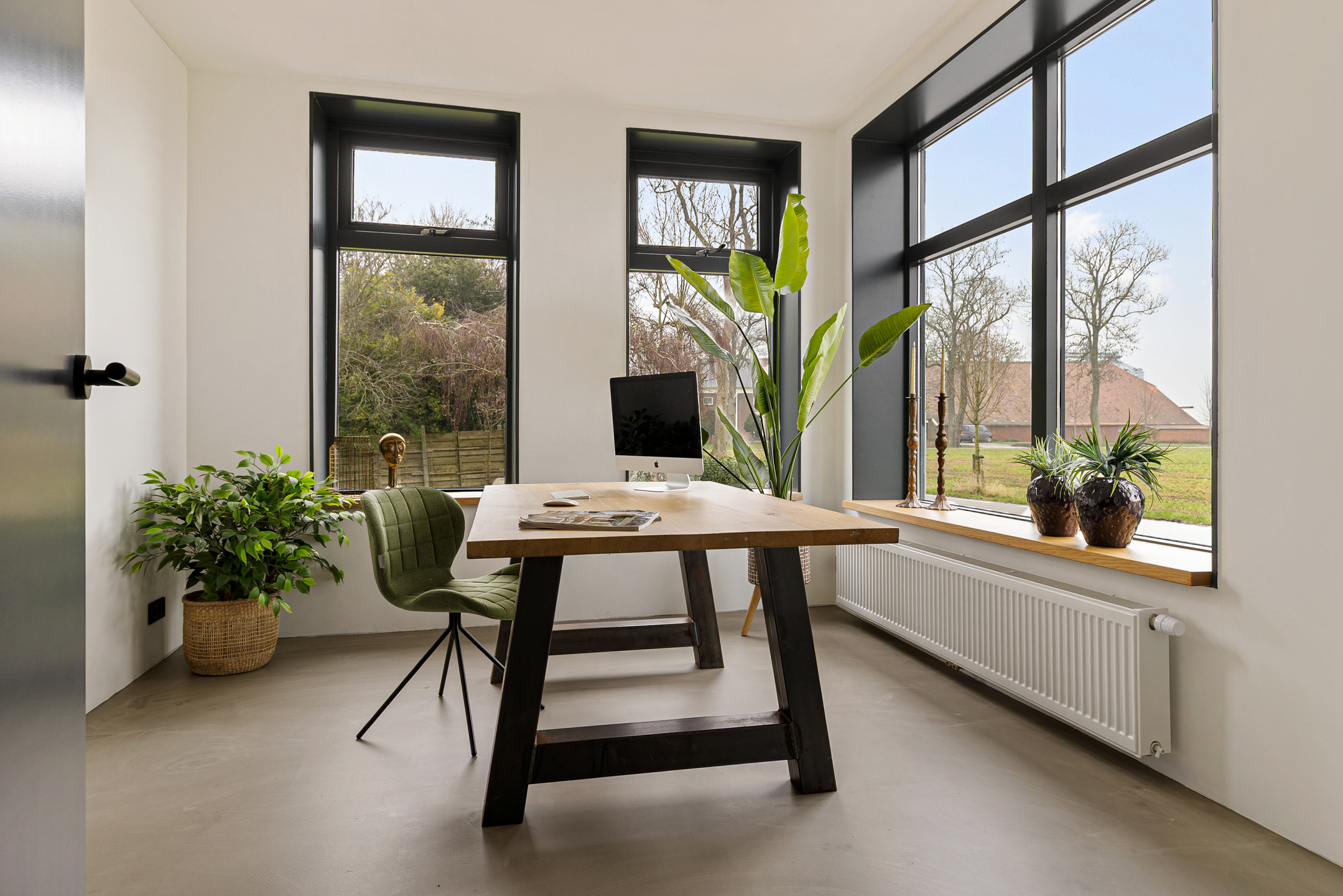 Dan het interieur. Zoals benoemd geheel vernieuwd, verduurzaamd en gemoderniseerd. Uiteraard is bij de indeling ook het uitzicht bepalend geweest. Zo heeft u vanuit de moderne, landelijke keuken met fraaie erker een vrij uitzicht over de landerijen richting Oostwold (Gn). Vanaf de eettafel kijkt u juist in de andere windrichting naar Farmsum en Delfzijl. In totaal een heerlijke leefruimte met een dubbele set tuindeuren, waarbij één leidt naar de overkapping. Eén en ander staat in een open verbinding met de woonkamer. Eveneens sfeervol door een tweede erker en voorzien van de trapopgang naar de eerste verdieping. Terug aan de straatzijde de entree met modern toilet en werk- annex studeerkamer. Wederom met vrij uitzicht! Op de verdieping zijn drie slaapkamers gesitueerd. Allen van een prettige maatvoering en voorzien van een laminaatvloer. Ook de moderne badkamer is op deze woonlaag gesitueerd, compleet met inloopdouche, wastafelmeubel en tweede toilet. Het geheel wordt op de overloop gecompleteerd door een opstelplaats voor het witgoed en de stookkast.