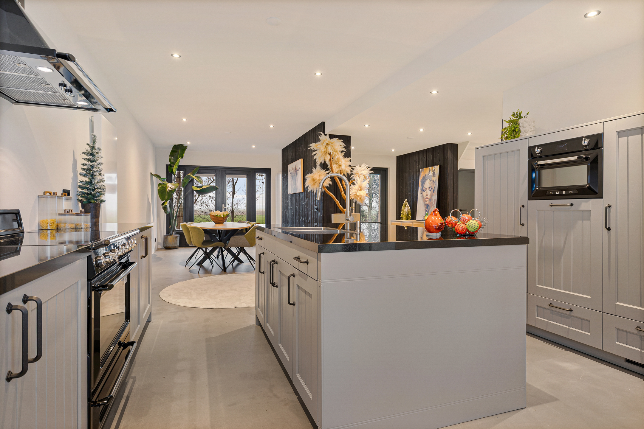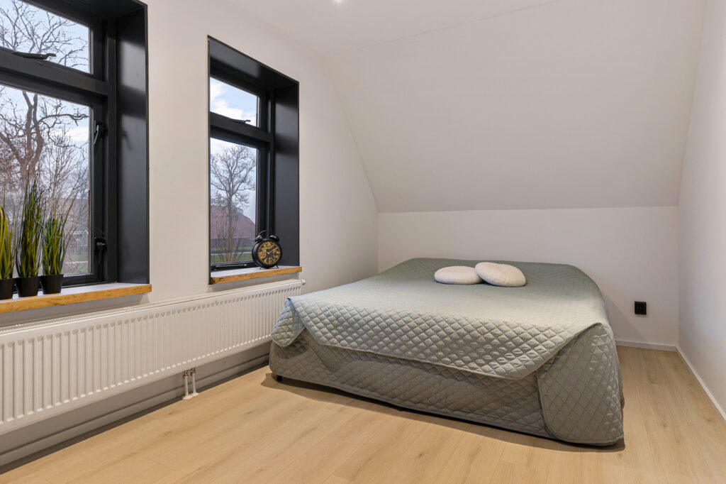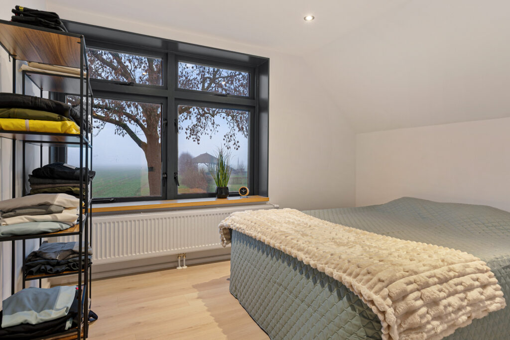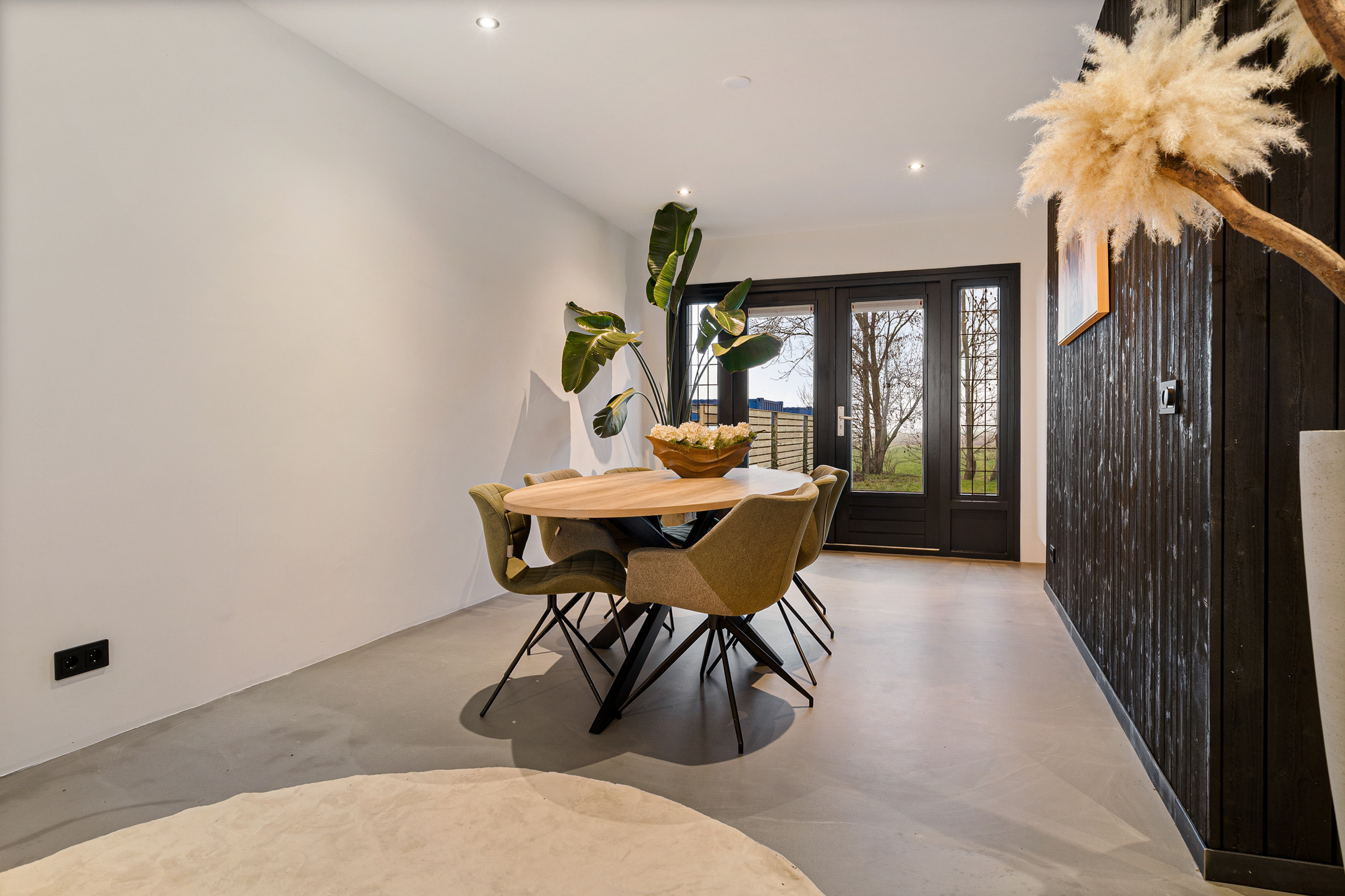 Landelijk wonen in een royaal en modern woonhuis? Dat is wat wij tussen de kernen Nieuwolda en Woldendorp, met vrij zicht voor en achter over de landerijen te koop mogen aanbieden. Deze vrijstaande woning is in 2025 zowel aan de binnen- als buitenzijde volledig gemoderniseerd en verduurzaamd. Zo zijn alle gevels aan de binnenzijde geïsoleerd, nagenoeg alle kozijnen vernieuwd en voorzien van HR++ beglazing maar is ook het schuine dak aan de binnenzijde geïsoleerd. In de achtergevel zijn vervolgens twee sets met tuindeuren geplaats, waarbij één leidt naar de eveneens dit jaar aangebouwde veranda. Aangezien de toegepaste gevelbekleding op de achtergevel ook is gebruikt voor de dakkapel en de vrijstaande schuur annex garage van ruim vijftig vierkante meter ontstaat er een fraai geheel. Helemaal in de wetenschap dat deze zwarte planken ook nog eens in het interieur zijn verwerkt. Nog even over de buitenzijde. Het woonhuis en de schuur annex garage staan zeer gunstig op een perceel van ruim duizend vierkante meter. De pas aangelegde oprit biedt daarbij goede uitbreidingsmogelijkheden voor de stalling van meerdere auto’s indien gewenst.