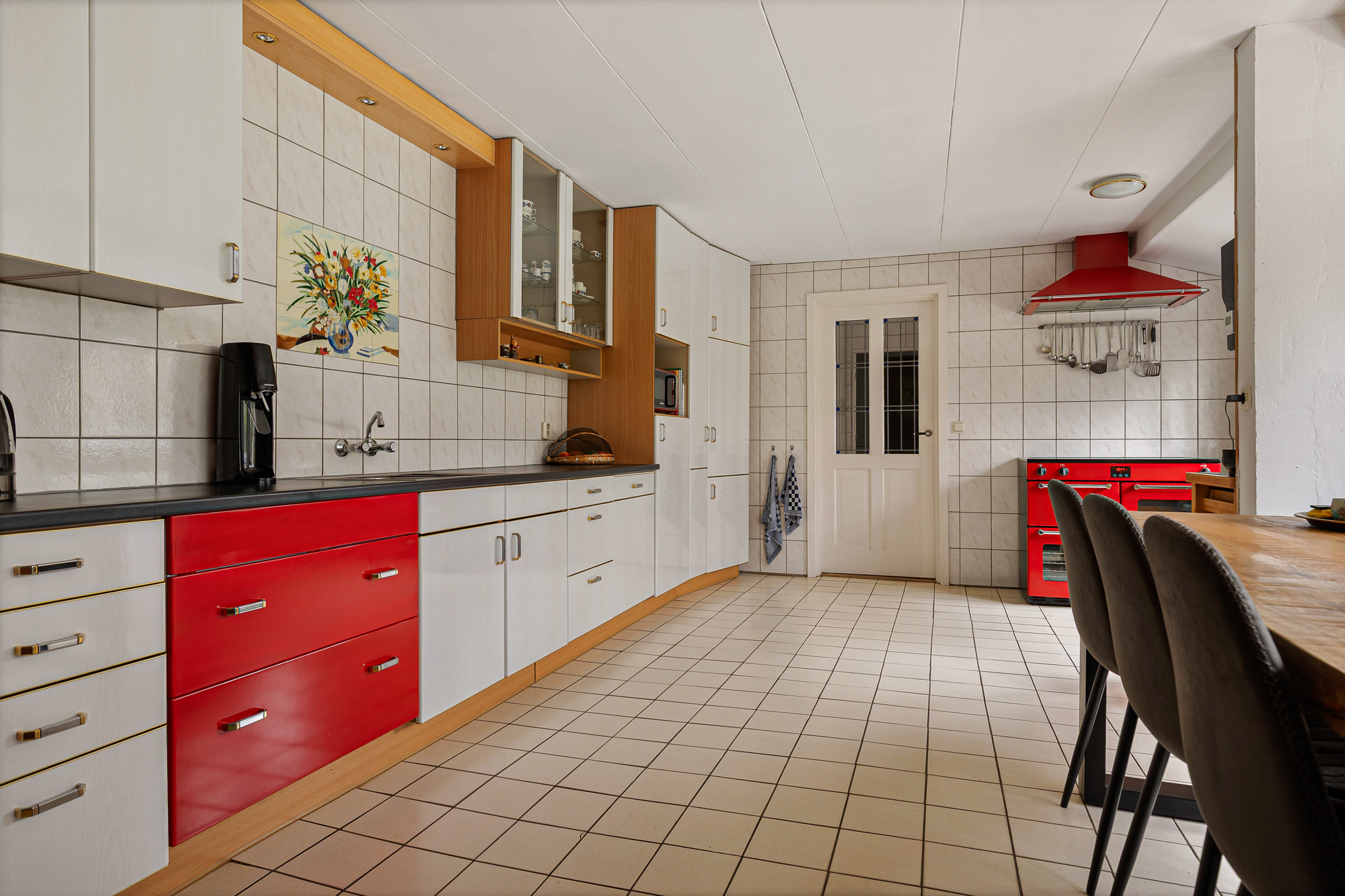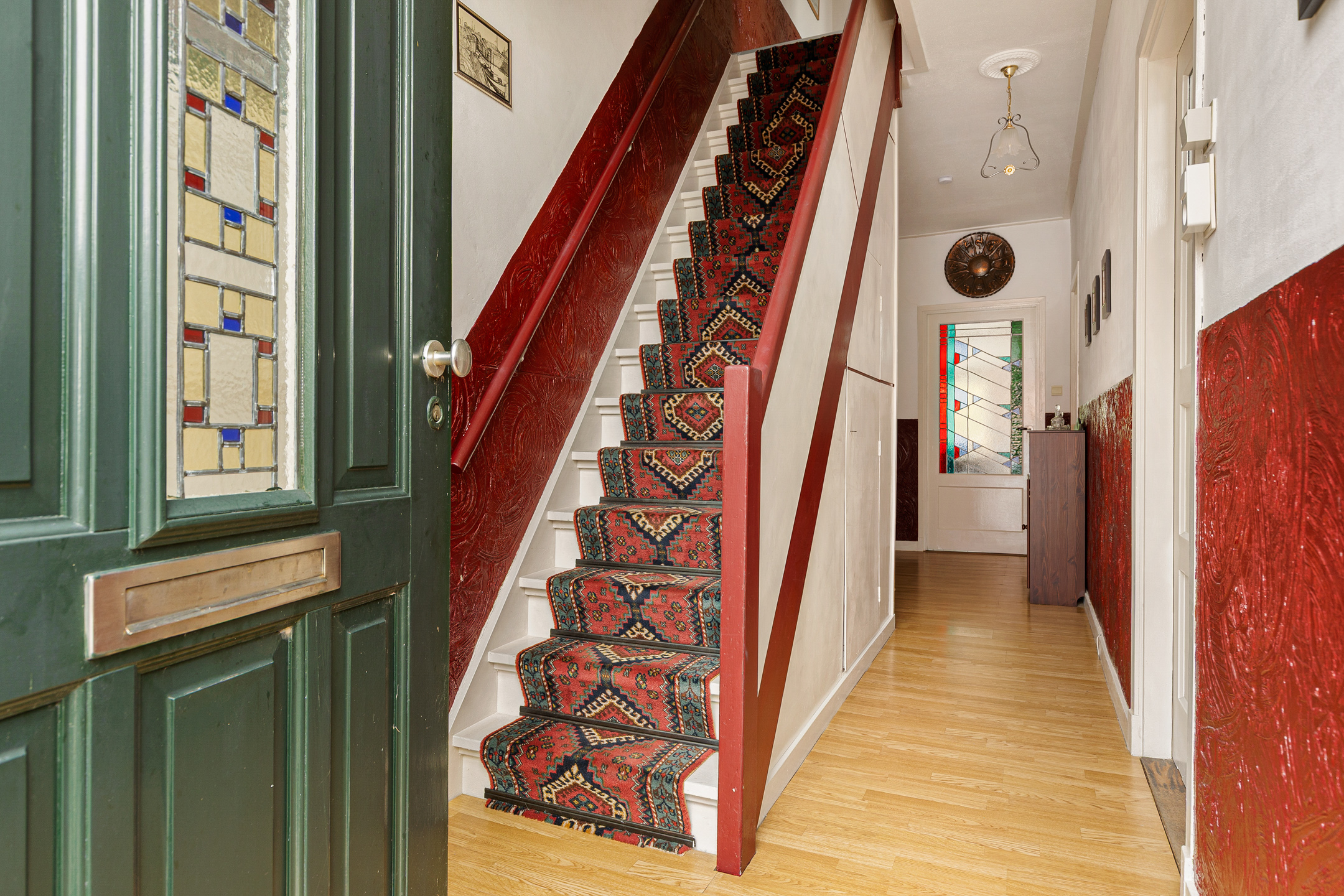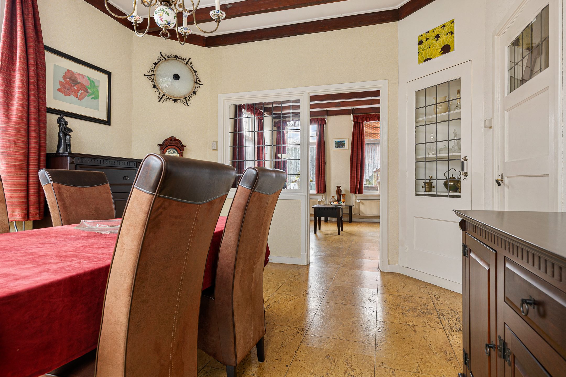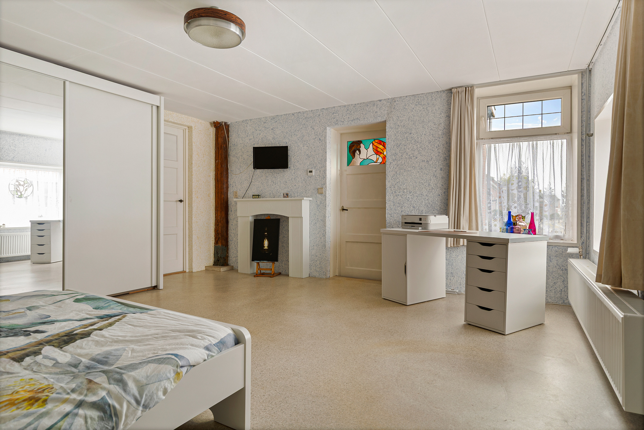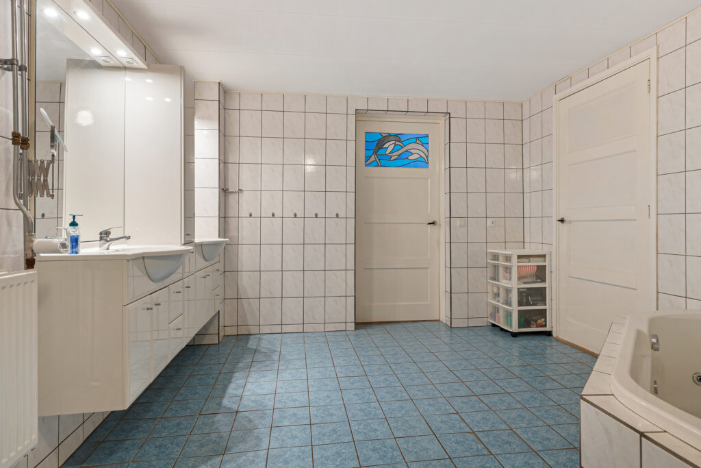 De indeling van de Houwerdastraat 18 is in de eerste plaats royaal te noemen, maar ook levensloopbestendig. Er is namelijk sprake van een ruime slaap- en dito badkamer op de begane grond. De woonkamer is middels een ‘Engelse suite’ verdeeld in een ‘eet’- en ‘zit’kamer, grenzend aan de functionele woonkeuken. Een achterhal met toilet, stookruimte en bijkeuken completeren de begane grond met de schuur en het atelier. Op de verdieping zijn de slaapkamers gesitueerd. Drie in totaal en allen van bovengemiddelde oppervlaktes waarbij twee beschikken over vaste kastruimtes.