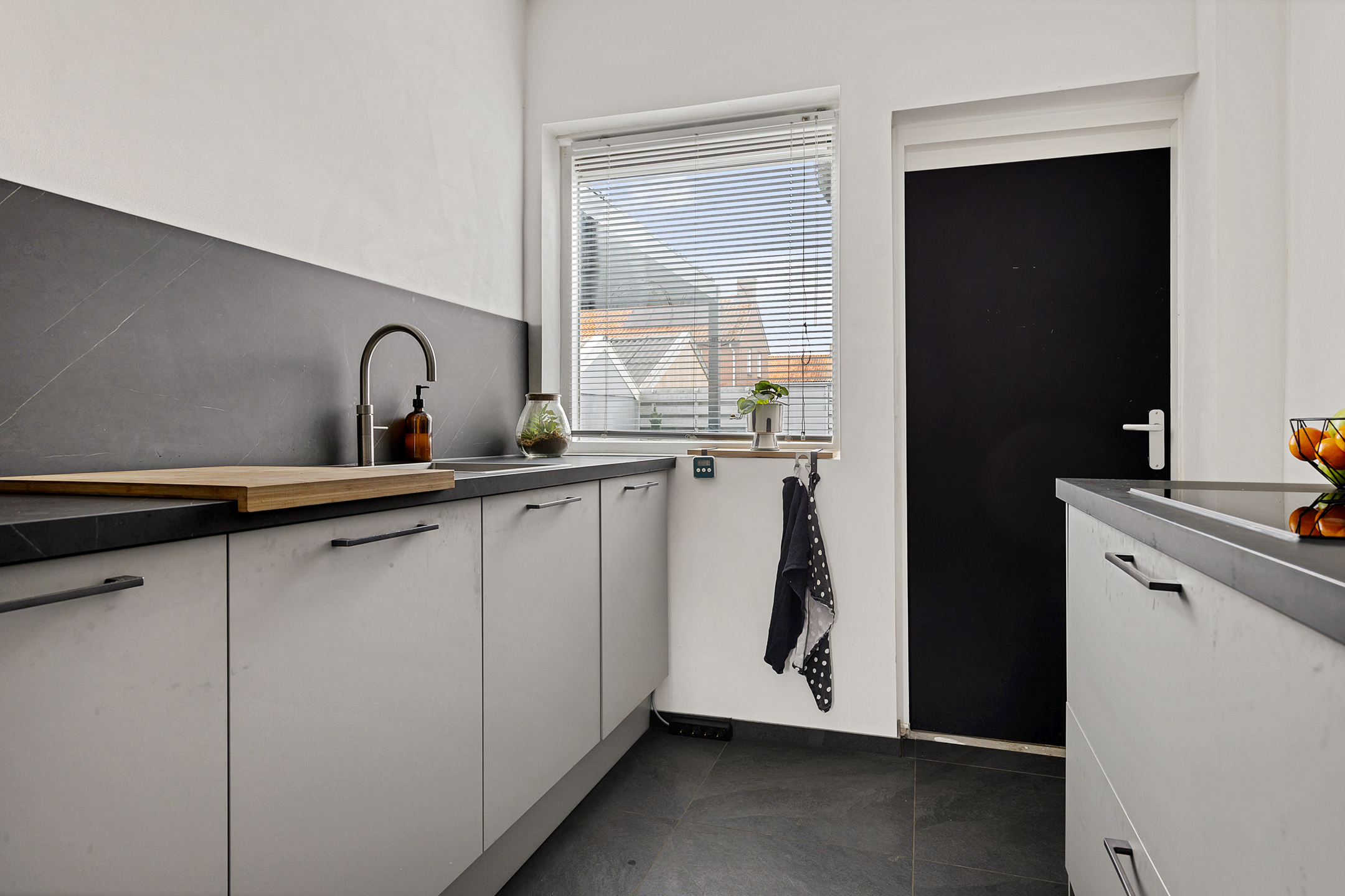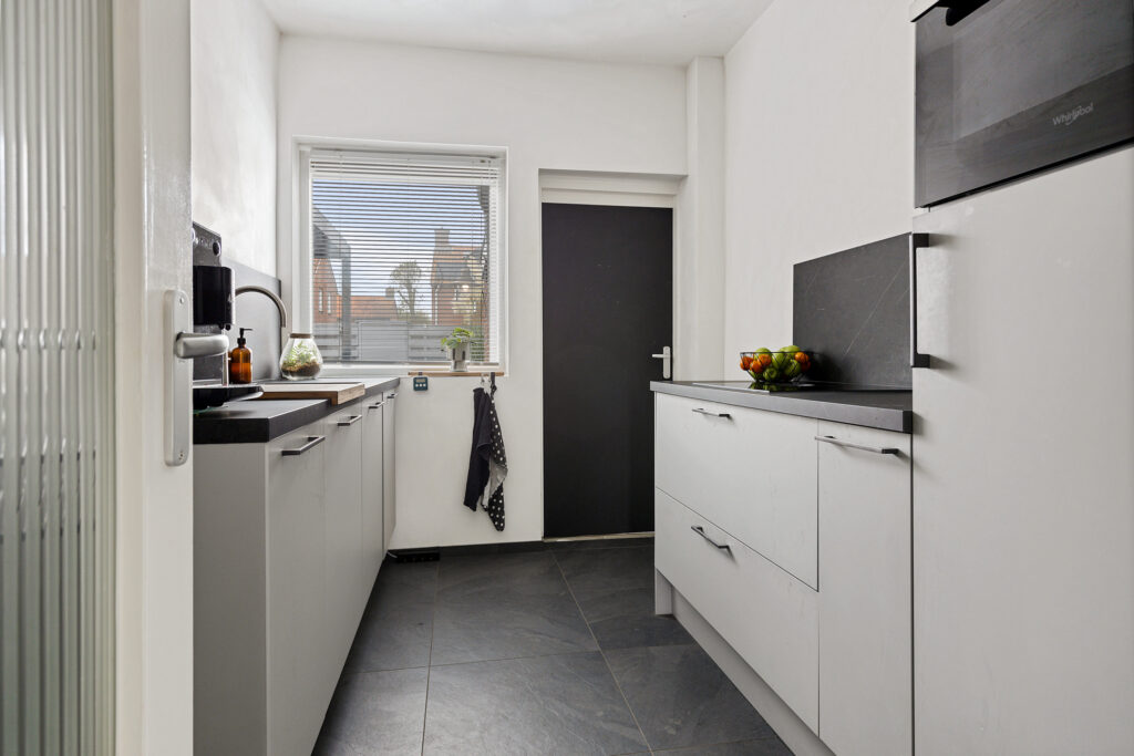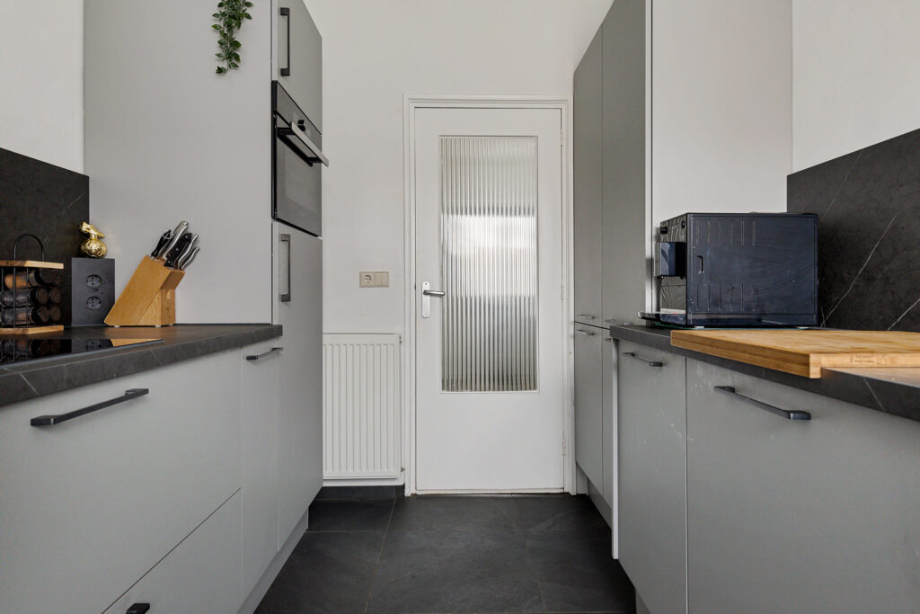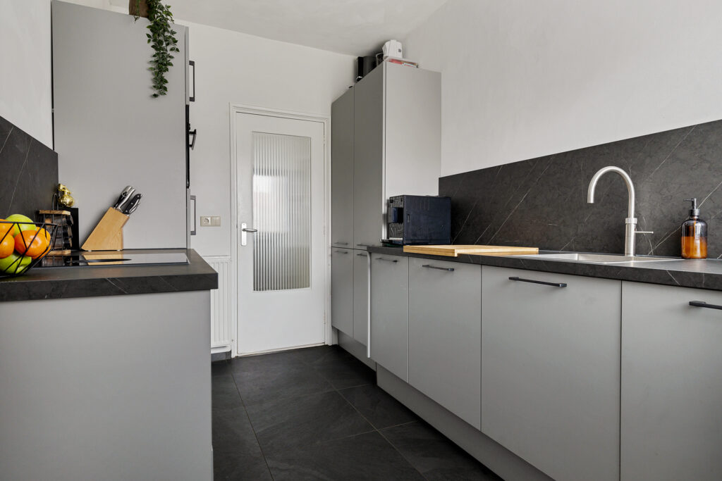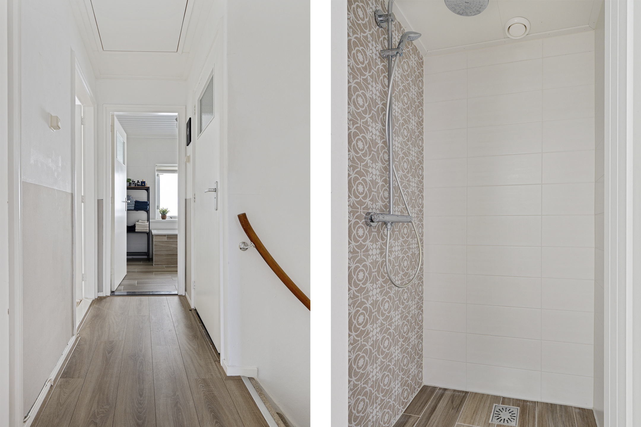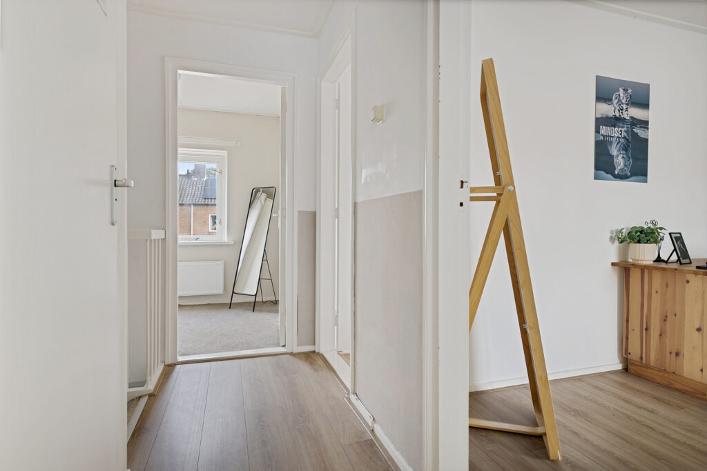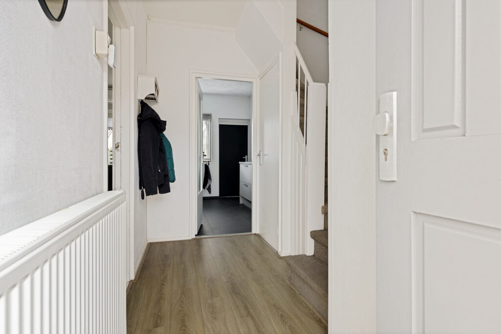 Deze heerlijke starterswoning kent een functionele indeling. Zo biedt de ontvangsthal direct al plaats aan een eigentijds betegeld toilet, een functionele provisieruimte en de trapopgang naar de eerste verdieping. De doorzonwoonkamer beschikt vervolgens over een nette laminaatvloer en tuindeur. Het geheel wordt op de begane grond gecompleteerd door de moderne, gesloten keuken voorzien van de aangrenzende bijkeuken. Op de eerste verdieping zijn de slaapkamers gesitueerd, drie in totaal en voorzien van laminaatvloeren en tapijt. Ook de moderne badkamer is op deze woonlaag gesitueerd, compleet met lig-bad en wastafelmeubel maar ook een tweede - separate - doucheruimte. Het geheel wordt op de tweede verdieping gecompleteerd door de vliering via een vlizotrap.
