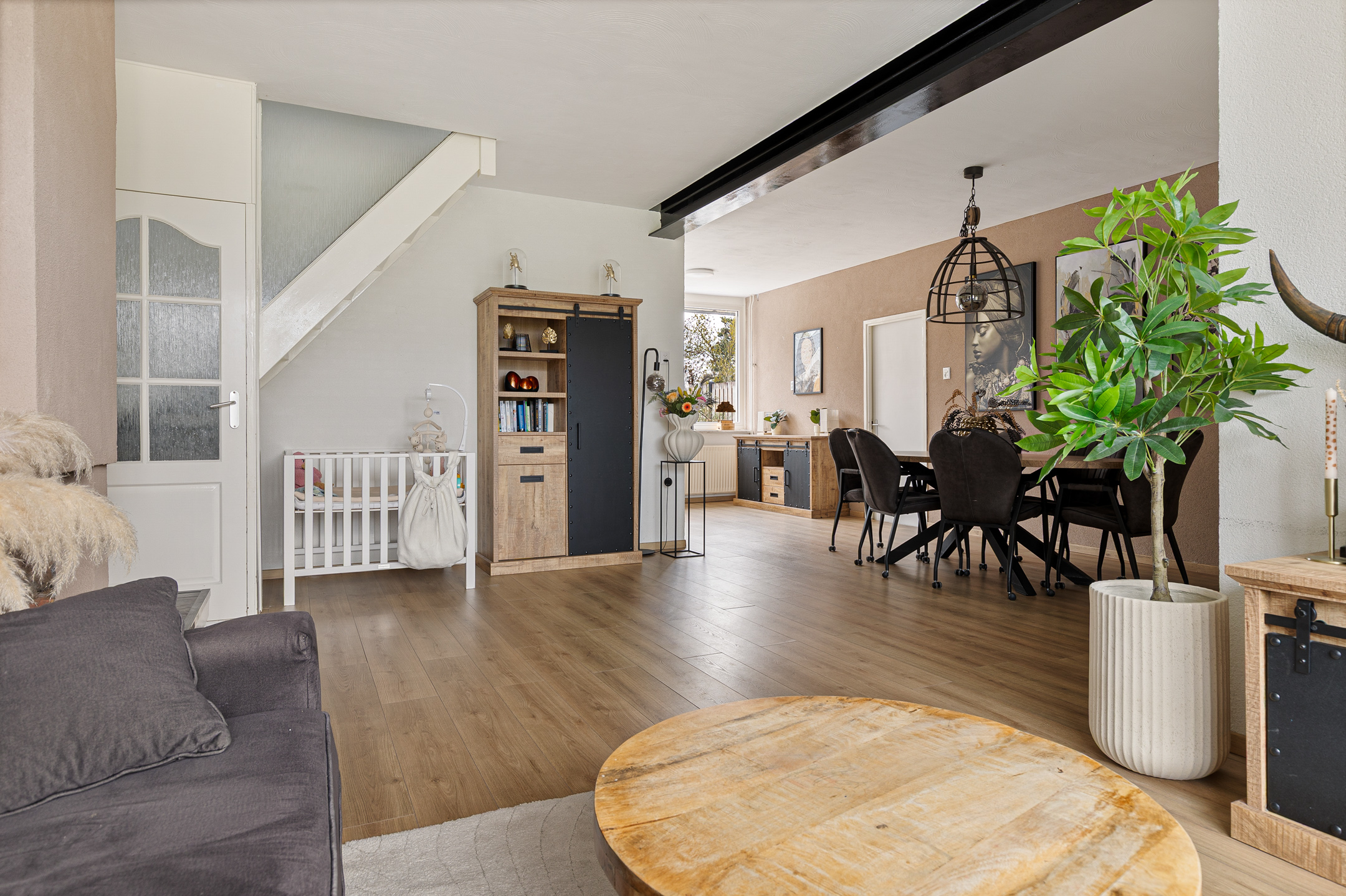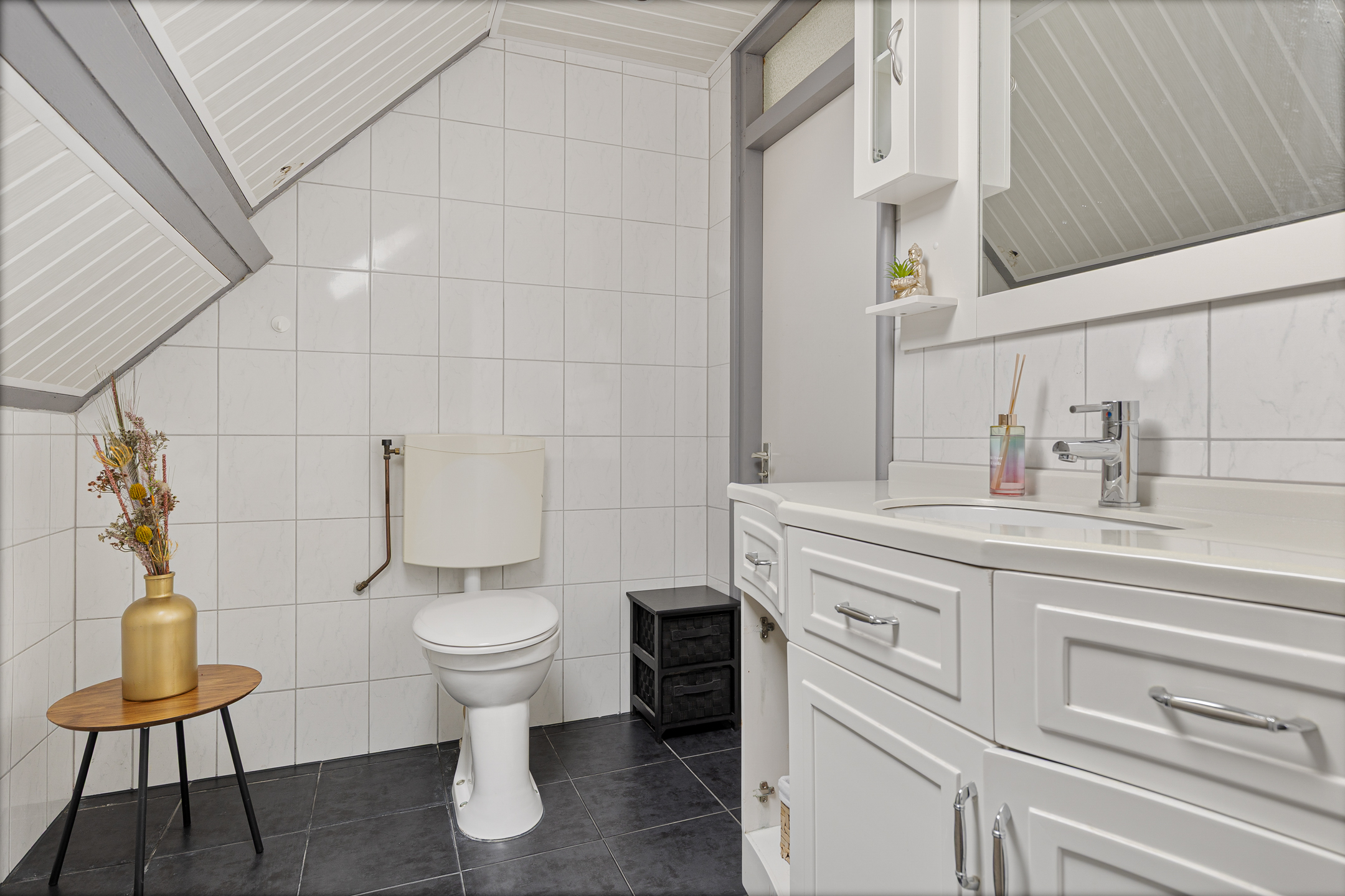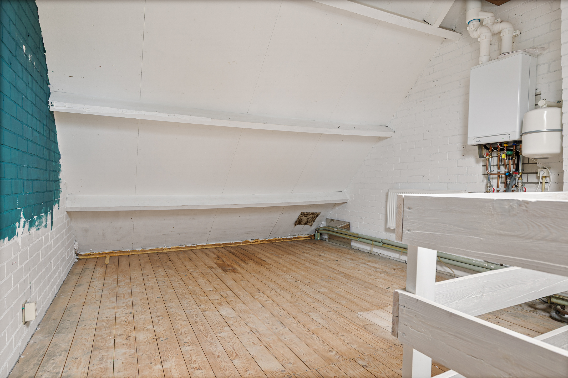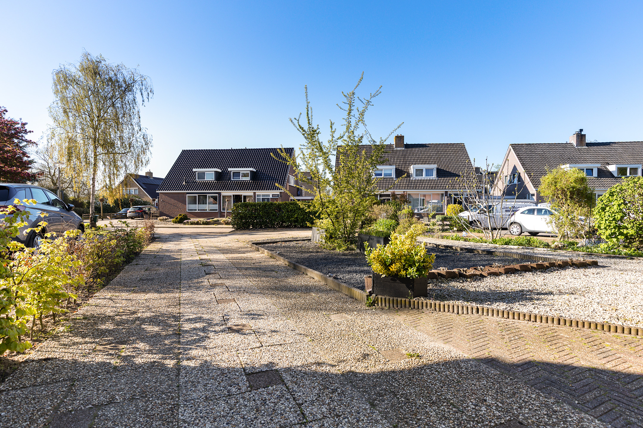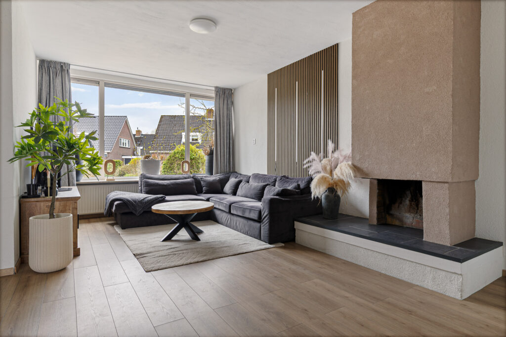 De woning is ook onderhoudsvriendelijk en modern te noemen. Onderhoudsvriendelijk vanwege de aanwezigheid van kunststof kozijnen en modern vanwege onder andere de jonge keuken- en toiletinrichting. Qua indeling speels en functioneel. Om te beginnen aan de straatzijde Z-vormige woonkamer met laminaatvloer en open haard. Tuingericht de woonkeuken met moderne inrichting, tuindeur en bijkeuken met doorgang naar de garage. Op de eerste verdieping drie functionele slaapkamers en de ruime badkamer waarbij een vaste trapopgang leidt naar de tweede verdieping. Hier is een grote zolder met slaapkamer in wording gesitueerd.