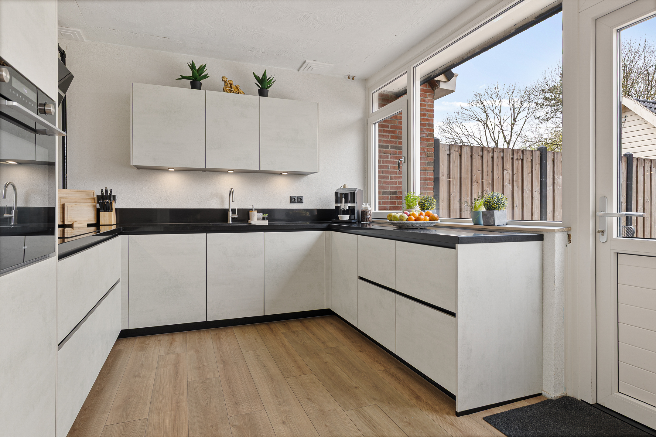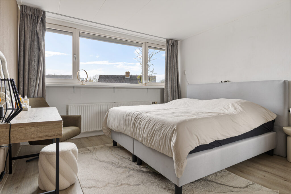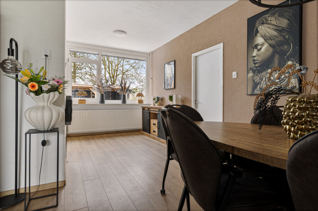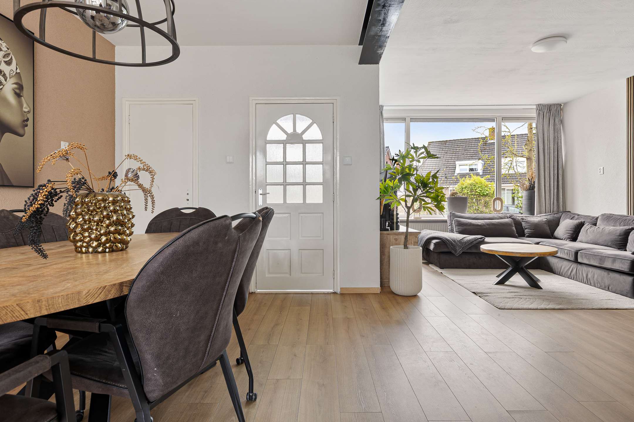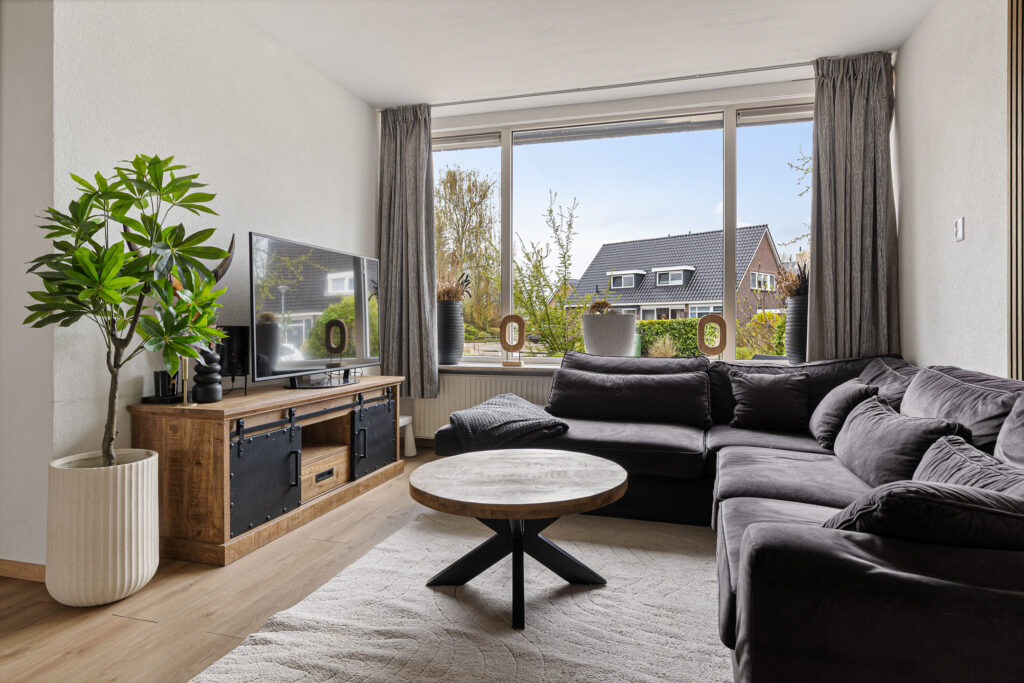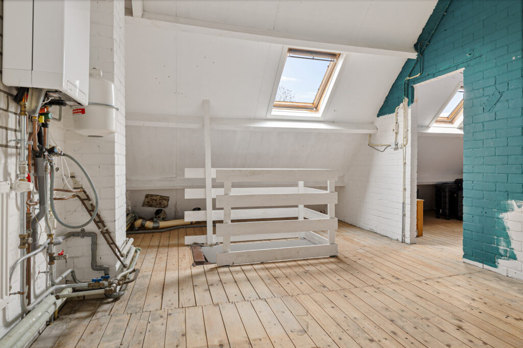 De woning is ook onderhoudsvriendelijk en modern te noemen. Onderhoudsvriendelijk vanwege de aanwezigheid van kunststof kozijnen en modern vanwege onder andere de jonge keuken- en toiletinrichting. Qua indeling speels en functioneel. Om te beginnen aan de straatzijde Z-vormige woonkamer met laminaatvloer en open haard. Tuingericht de woonkeuken met moderne inrichting, tuindeur en bijkeuken met doorgang naar de garage. Op de eerste verdieping drie functionele slaapkamers en de ruime badkamer waarbij een vaste trapopgang leidt naar de tweede verdieping. Hier is een grote zolder met slaapkamer in wording gesitueerd.