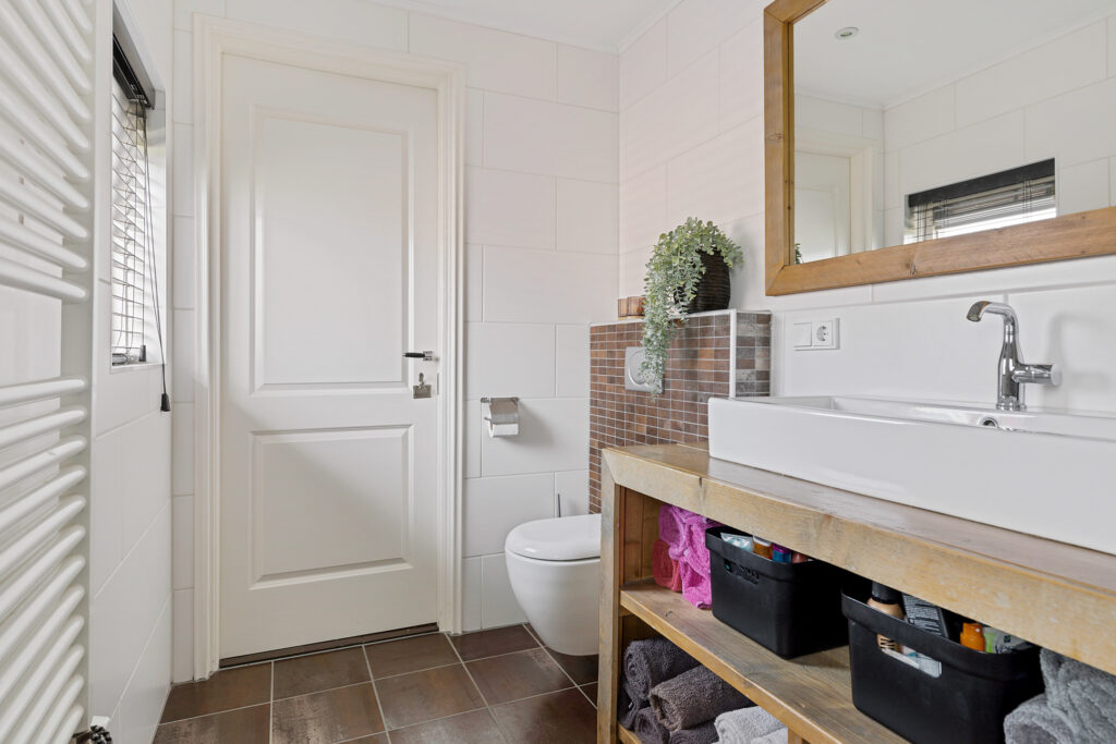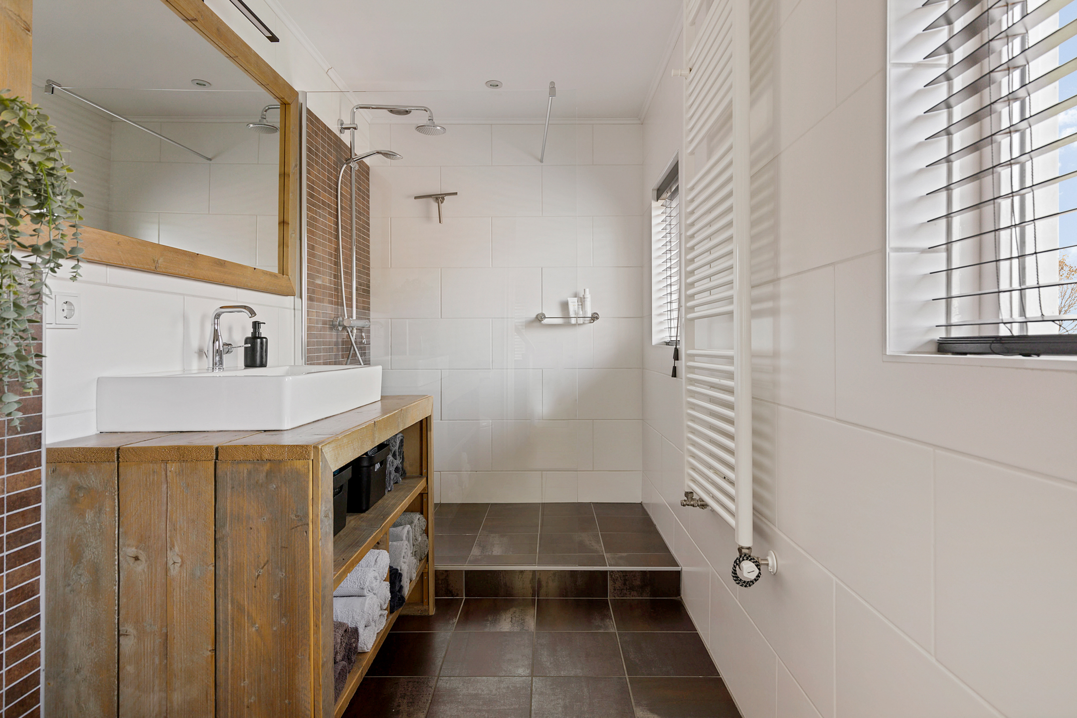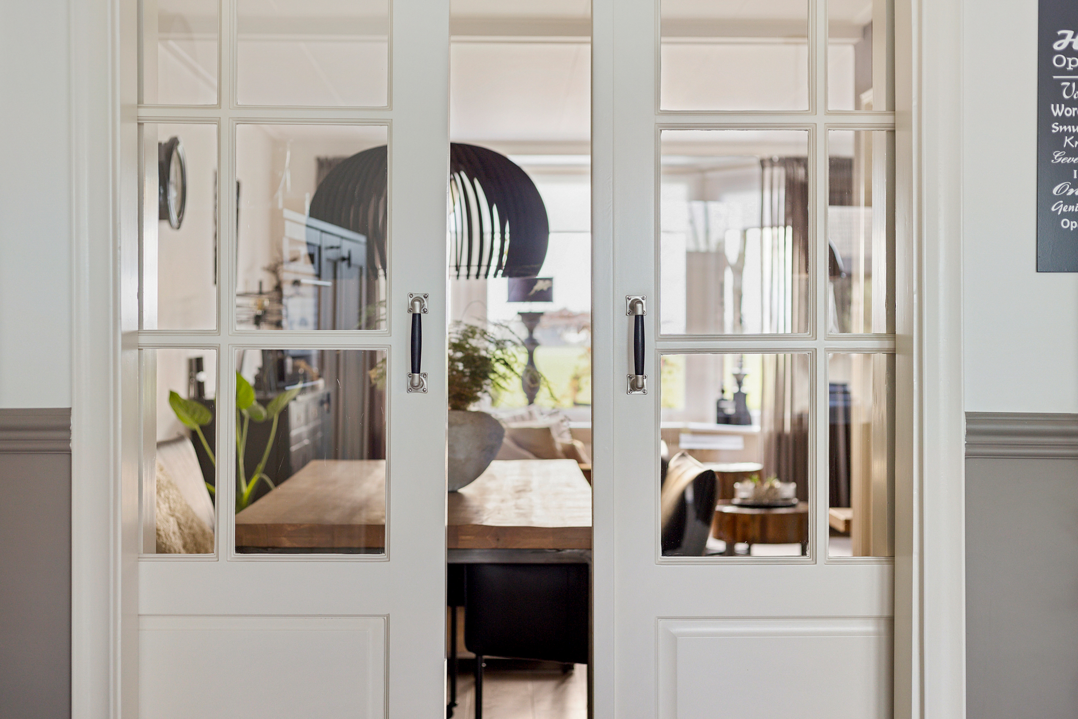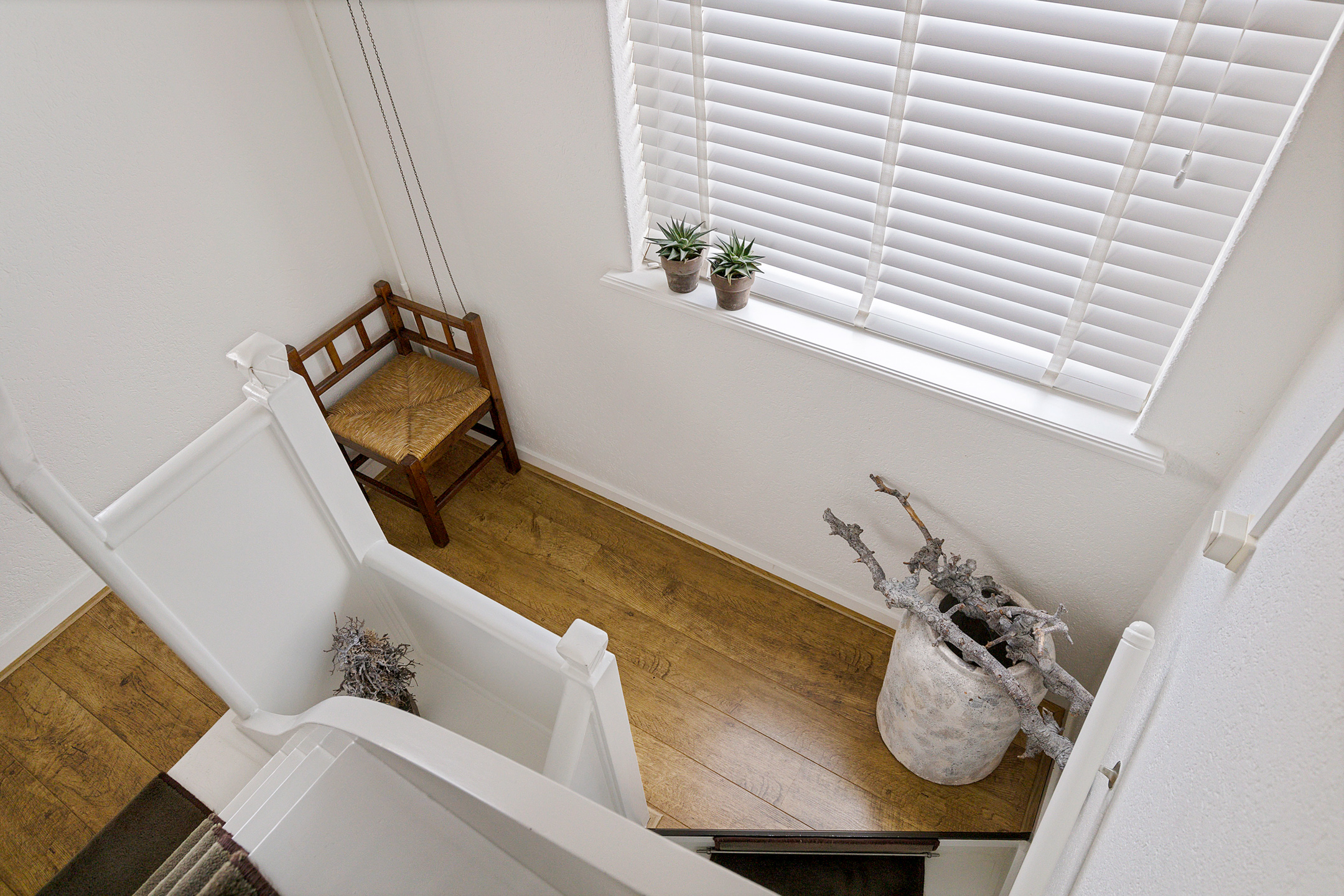 De indeling bestaat op de begane grond globaal uit een straatgerichte woonkamer waarbij uiteraard ook het vrije uitzicht direct opvalt! Daarnaast de fraaie erker, houten vloerdelen en aanwezigheid van een provisieruimte. Aan de achterzijde de uitgebouwde woonkeuken, compleet met tuindeuren, was- annex stookruimte en toegang tot de garage. In de ontvangsthal nog het eigentijds toilet en de trapopgang naar de eerste verdieping. Op deze woonlaag twee slaapkamers met de moderne badkamer voorzien van inloopdouche, wastafelmeubel en tweede toilet. Op de bovenste verdieping tot slot de derde slaapkamer met bergruimtes.