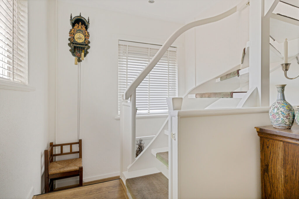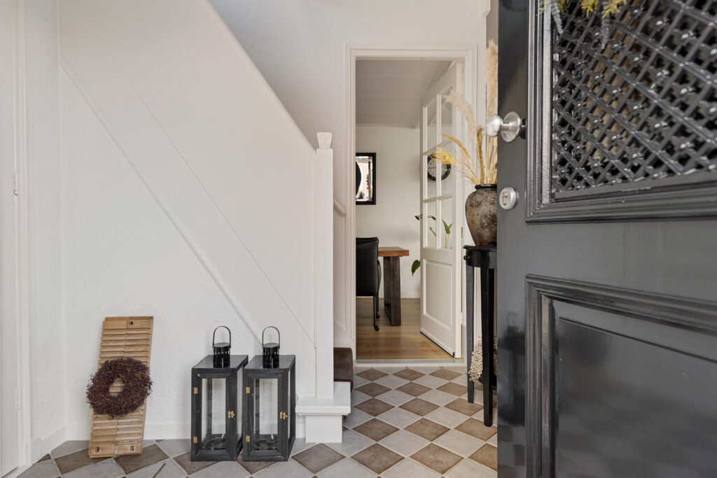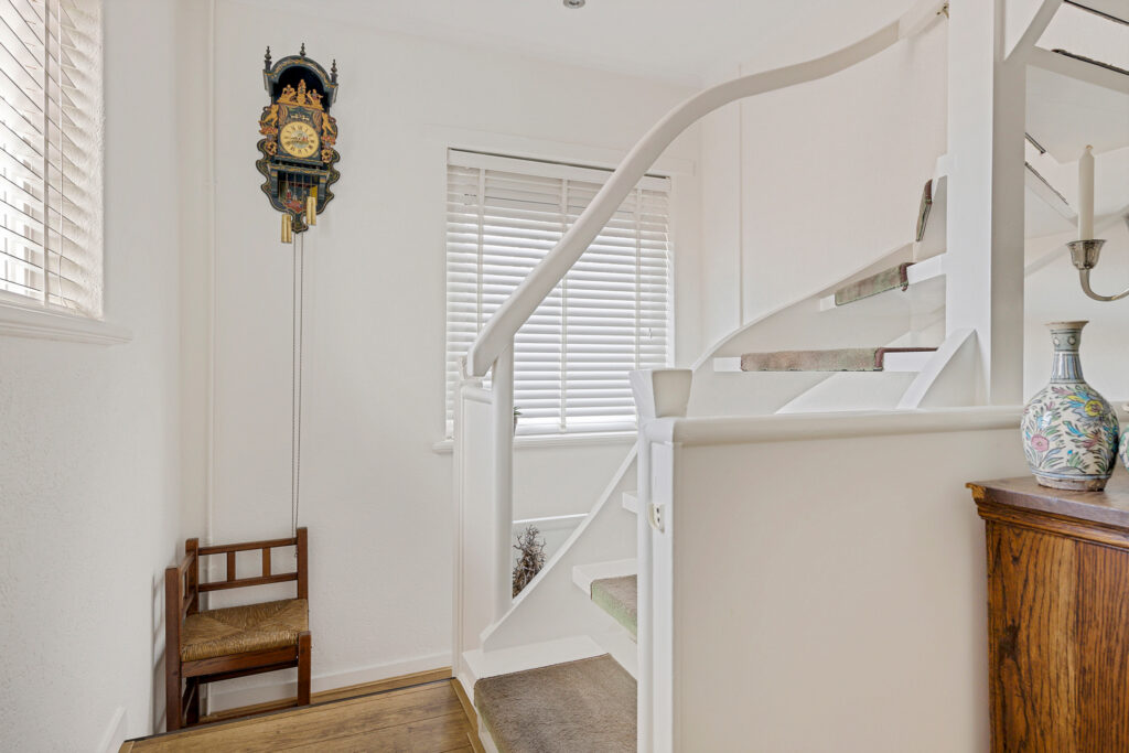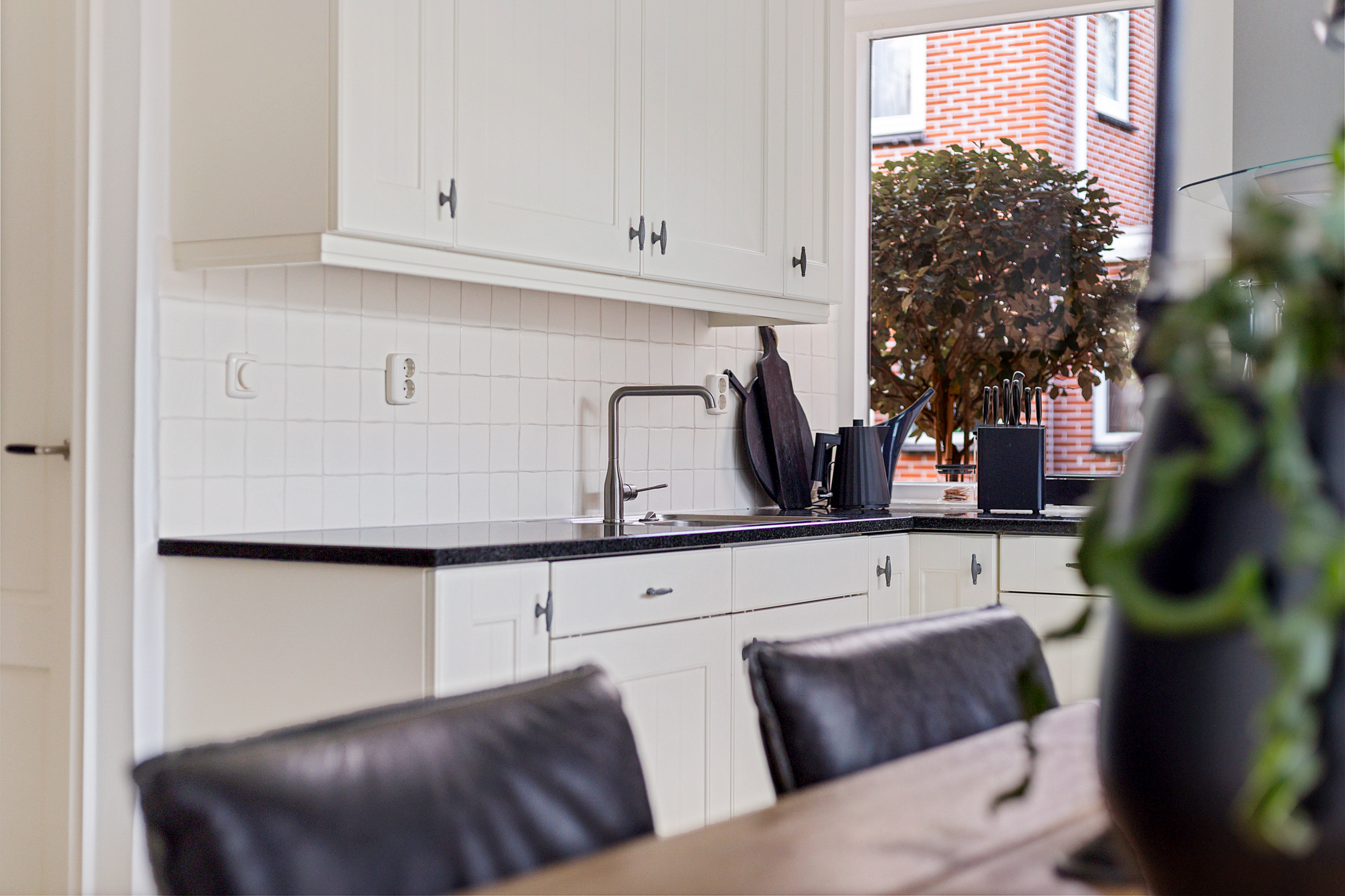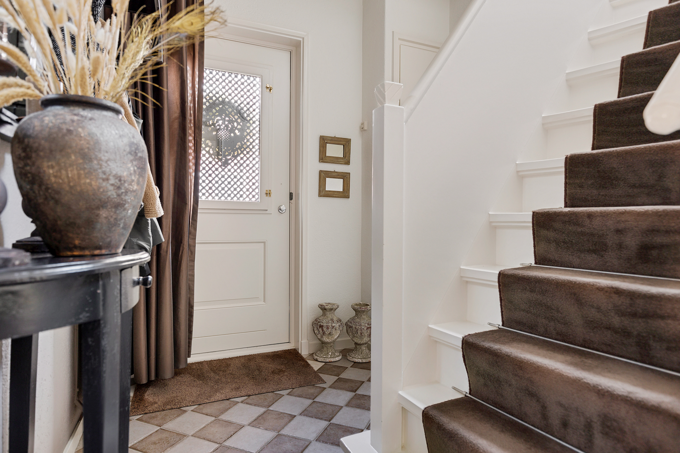 De indeling bestaat op de begane grond globaal uit een straatgerichte woonkamer waarbij uiteraard ook het vrije uitzicht direct opvalt! Daarnaast de fraaie erker, houten vloerdelen en aanwezigheid van een provisieruimte. Aan de achterzijde de uitgebouwde woonkeuken, compleet met tuindeuren, was- annex stookruimte en toegang tot de garage. In de ontvangsthal nog het eigentijds toilet en de trapopgang naar de eerste verdieping. Op deze woonlaag twee slaapkamers met de moderne badkamer voorzien van inloopdouche, wastafelmeubel en tweede toilet. Op de bovenste verdieping tot slot de derde slaapkamer met bergruimtes.
